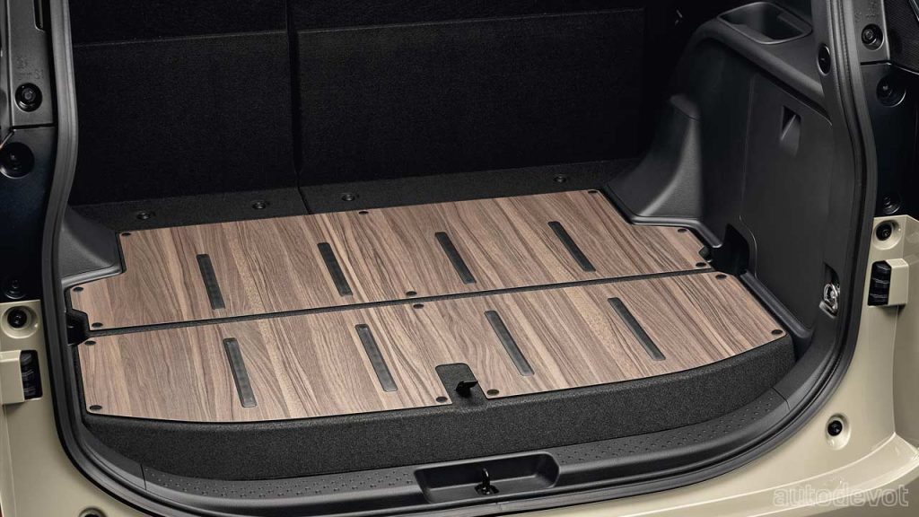 The spacious cabin offers plenty of creature comforts and storage options as you can probably tell, including USB-C ports behind the front seats with smartphone pockets; armrest hook on the driver’s seat for hanging shopping bags; ceiling air circulator for rear seats; sunshades for rear seats, and more. The fabric upholstery is claimed to come with deodorizing and water/oil-repellent treatment.