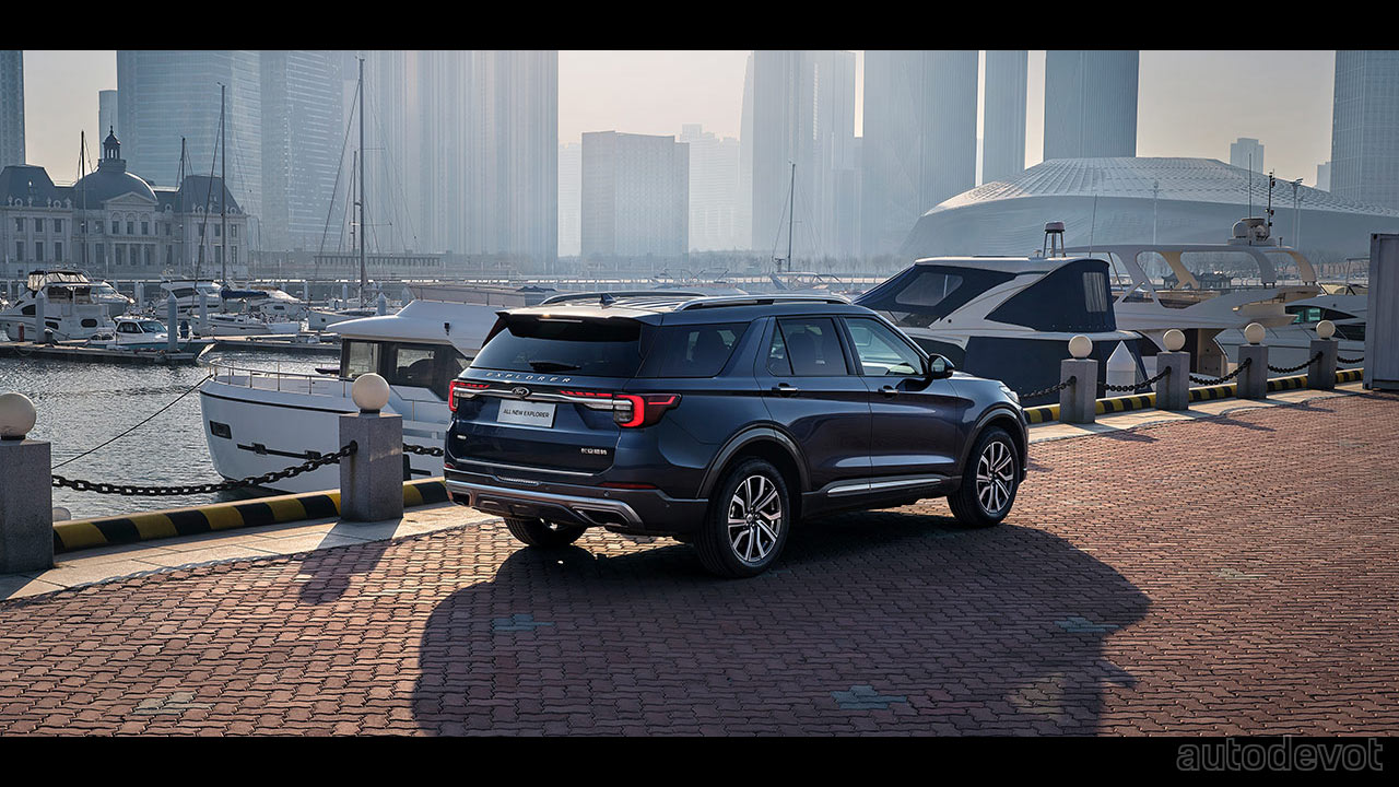 The current Explorer in China is powered by a 2.3-litre 4-cylinder EcoBoost (turbo petrol) engine with 203 kW (276 metric hp) and 425 Nm (313.5 lb-ft) of torque, paired with a 10-speed automatic gearbox. You get rear-wheel- and all-wheel-drive options as well.
