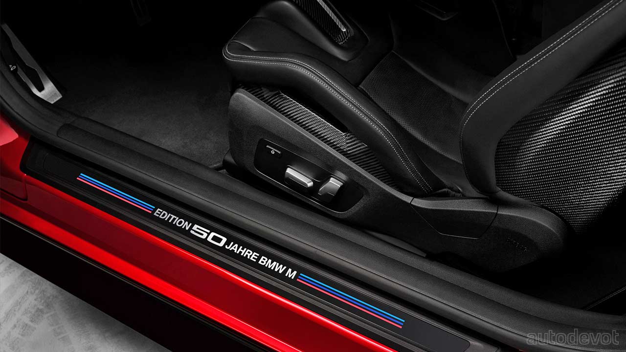 Inside, you get special 50 Jahre BMW M door sills, a special 50 Jahre BMW M plaque on the centre console, and special 50 Jahre BMW M stitching on the seat headrests.