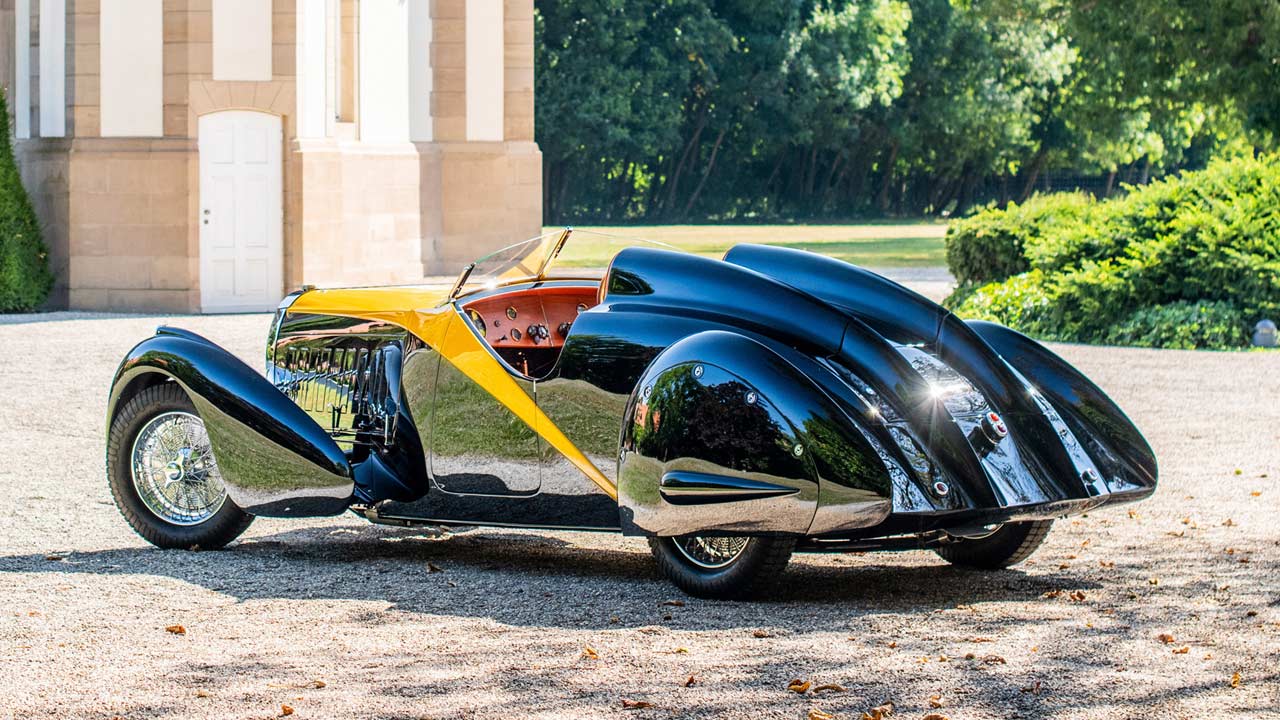 What you might be interested in knowing, however, is that the W16 Mistral borrows some of its styling cues not only from the Divo, the La Voiture Noire and the Bolide, but also from the 1934 Bugatti Type 57 Roadster Grand Raid. Those two roof-mounted air scoops are a nod to the Grand Raid.