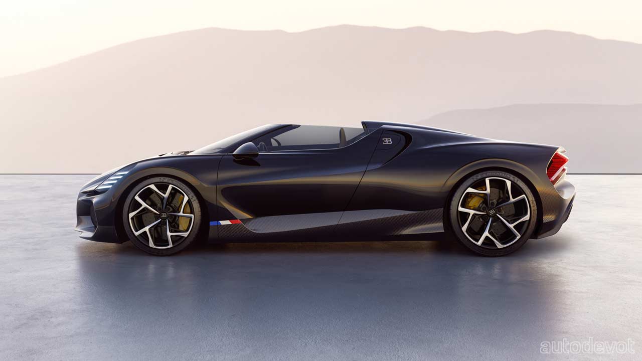 Speaking of the 8.0L W16 again, it’s a 1,177 kW (1,600 metric hp) version, the one that propelled the Chiron Super Sport 300+ to a world-record-breaking speed of 304.773 mph (490.5 km/h) in 2019, that is packed into the W16 Mistral. You know what that means right? This could be the fastest ICE-powered roadster in the world.