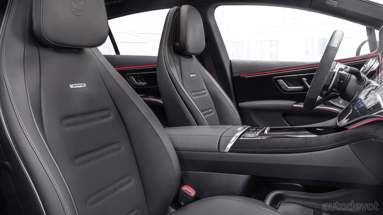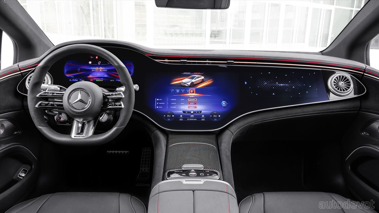 The EQS 53 4Matic+ is powered by two electric motors, one at each axle, offering combined figures of 484 kW (658 metric hp) and 950 Nm (701 lb-ft) of torque as standard. The optional Dynamic Plus package gets you 560 kW (761 metric hp) and 1,020 Nm (752 lb-ft) of torque.