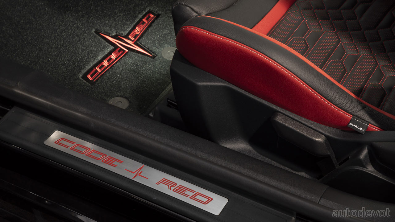 Inside, well, as you can tell, you get special leather upholstery with Code Red embroidery; Code Red-embroidered floor mats, Code Red door sills, and of course, a numbered dashboard plate.