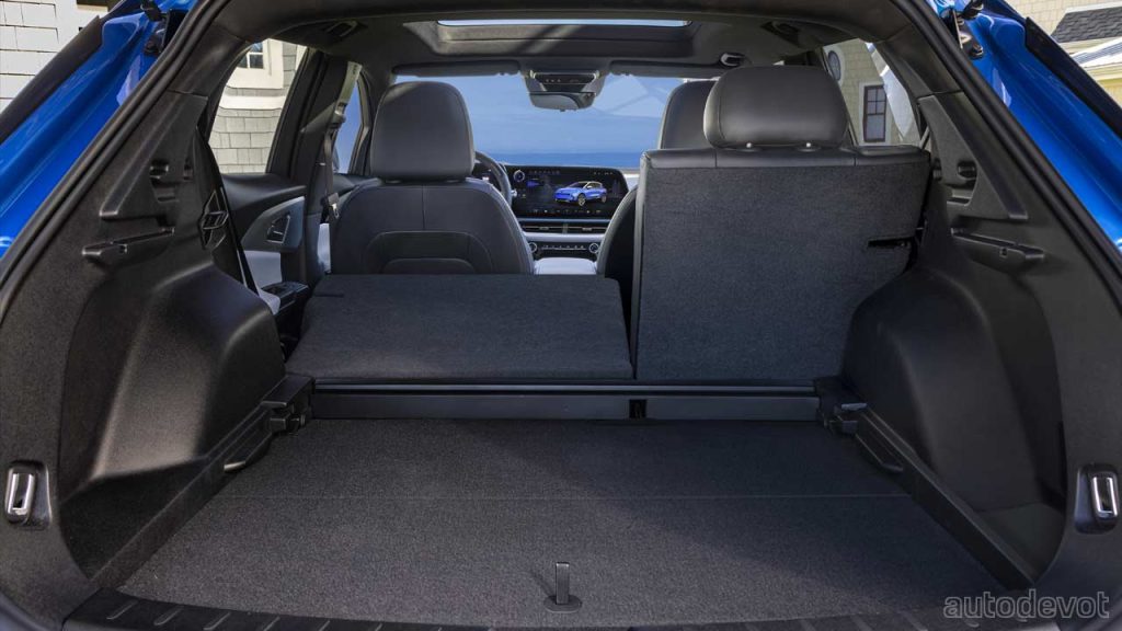 Moving on to the juicy bits of the story, the standard front-wheel-drive Equinox EV is estimated to offer output figures of 156.5 kW (210 bhp/213 metric hp) and 328 Nm (242 lb-ft) of torque. The eAWD system (dual-motor AWD) is optionally available on every single trim, offering an estimated 216 kW (290 bhp/294 metric hp) and 469 Nm (346 lb-ft) of torque. The battery pack capacity is yet to be disclosed, but GM estimates are as follows: