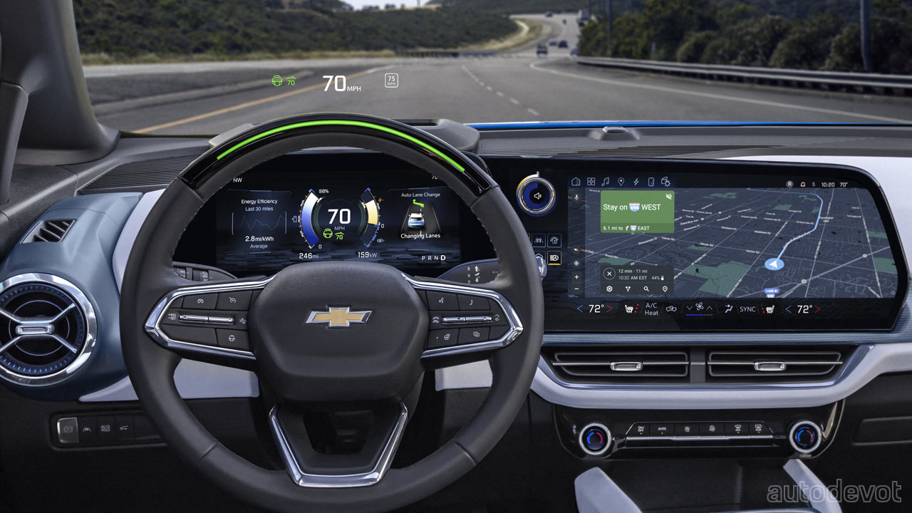 Key highlights of the base Equinox EV 1LT include 19-inch aluminum wheels, a 11-inch driver display, a 11-inch central touchscreen, manually-adjustable front seats, and standard Chevy Safety Assist suite which includes the usual stuff such as Automatic Emergency Braking, Following Distance Indicator, Forward Collision Alert, Front Pedestrian Braking, Lane Keep Assist with Lane Departure Warning and IntelliBeam automatic high beams. You also get Rear Park Assist, Reverse Automatic Braking, Safety Alert Seat, Rear Cross Traffic Braking, and Blind Zone Steering Assist.