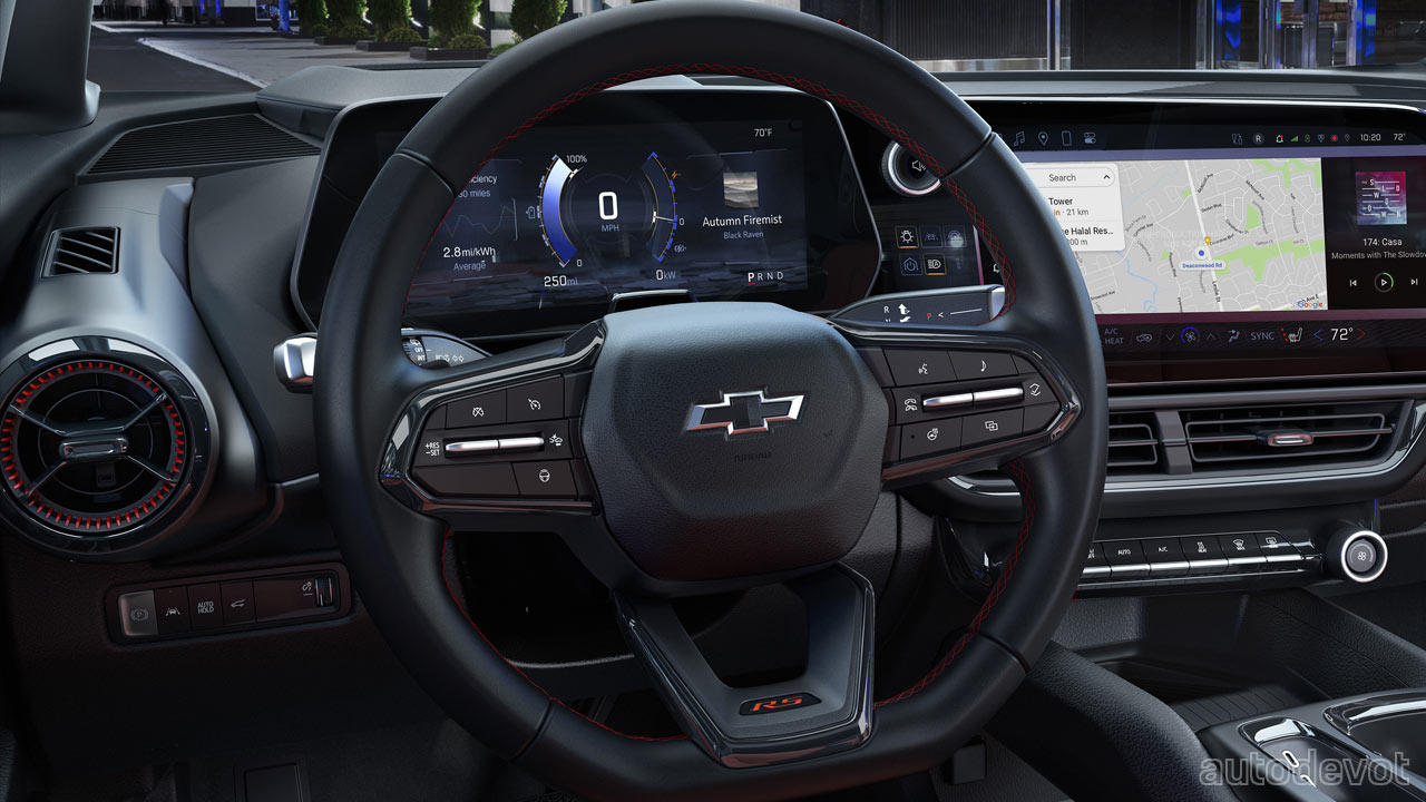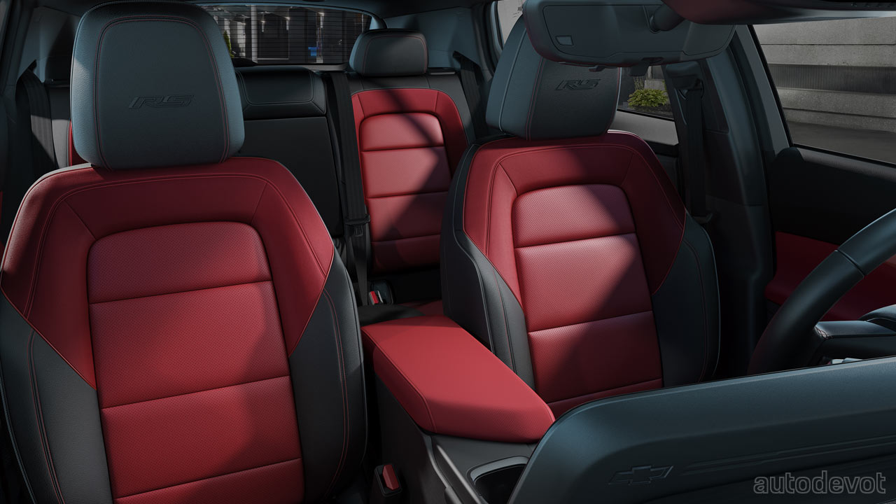 The Equinox EV 2RS is gonna be a limited edition model for some reason, and as you can probably tell, it tries to look more sporty with more dark elements. It appears to be based on the 2LT. Key highlights include black 20-inch aluminum wheels, black grille, black ORVM caps, black roof rails, and optional black roof. For the cabin, you get optional Black with Red accents theme. The rest of the options are the same as the 2LT.