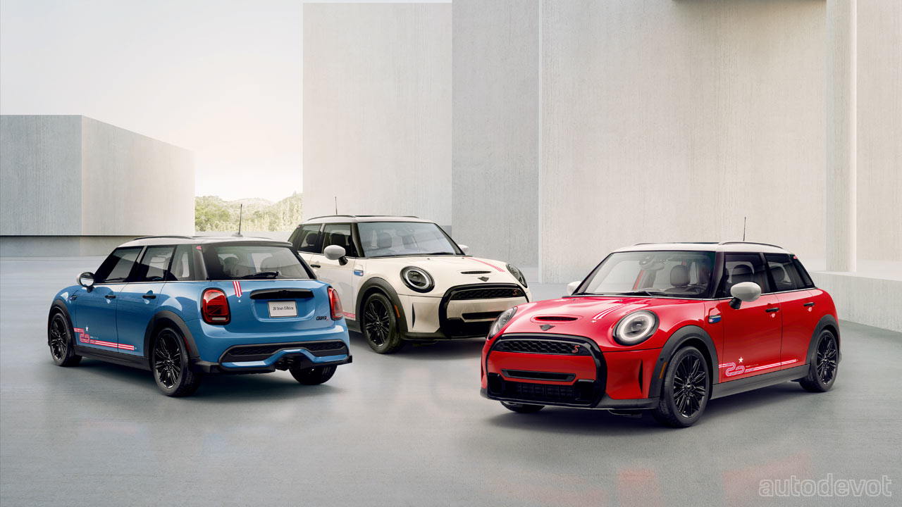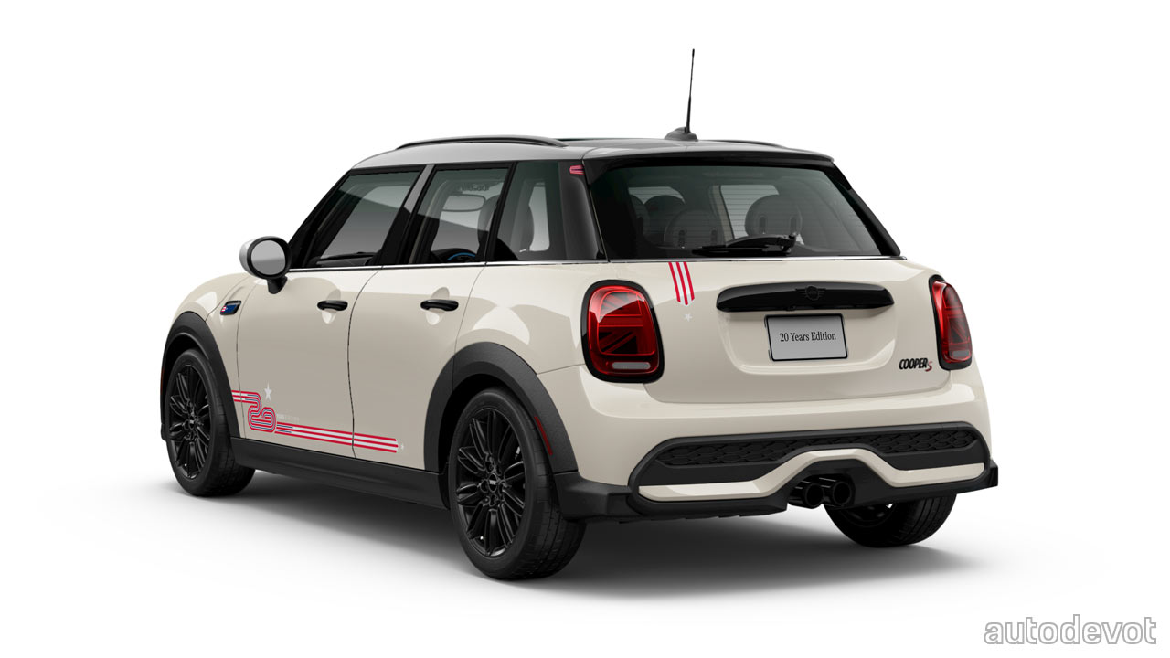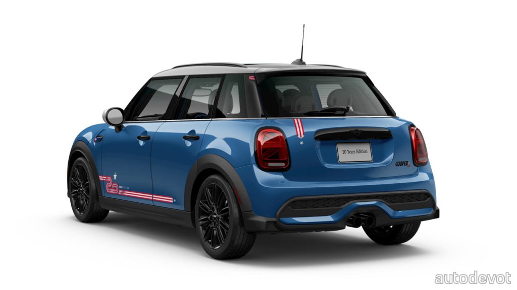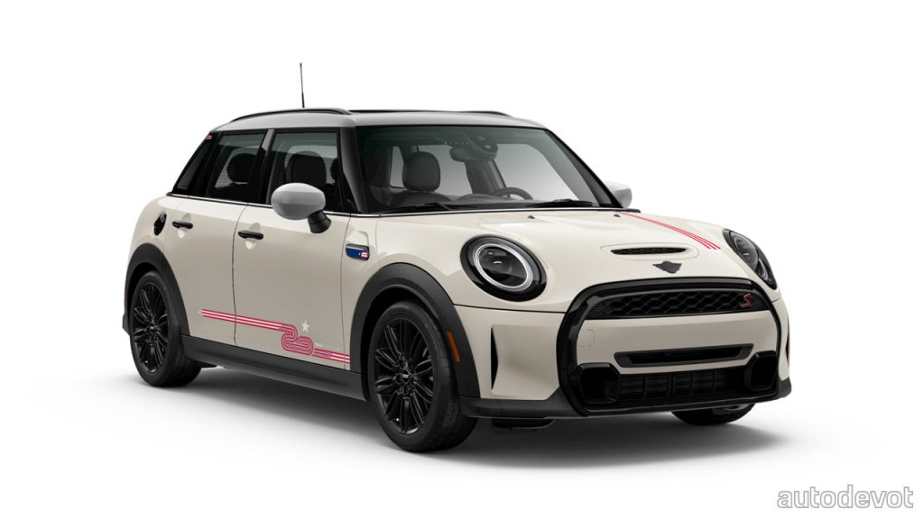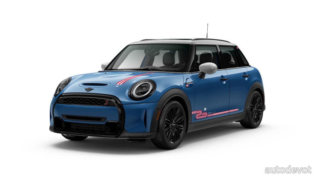 After the Multitone Edition last month, Mini has launched the Mini 20 Years Edition for the U.S. market, which as the name suggests, celebrates the brand’s 20 years in the U.S. market. It’ll be available as a 2023 Mini Cooper S Hardtop 4 Door variant, with MSRP starting at $36,315 (plus an additional $850 for Destination and Handling).