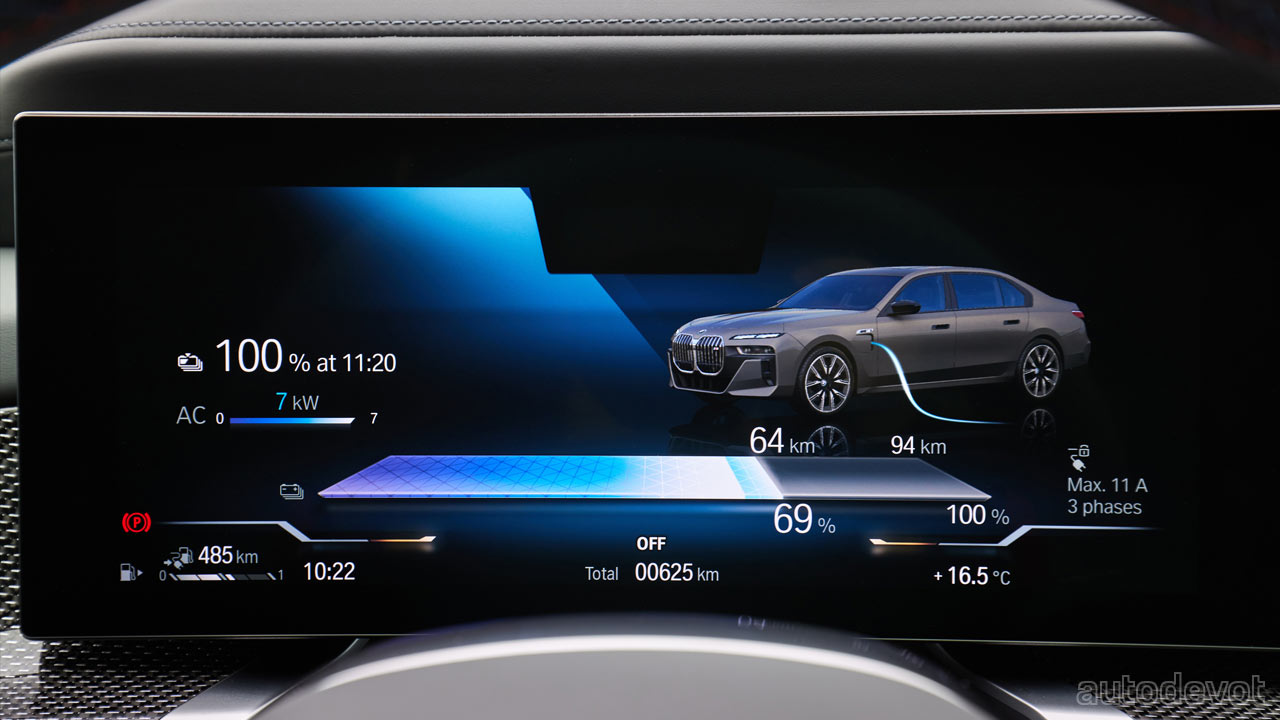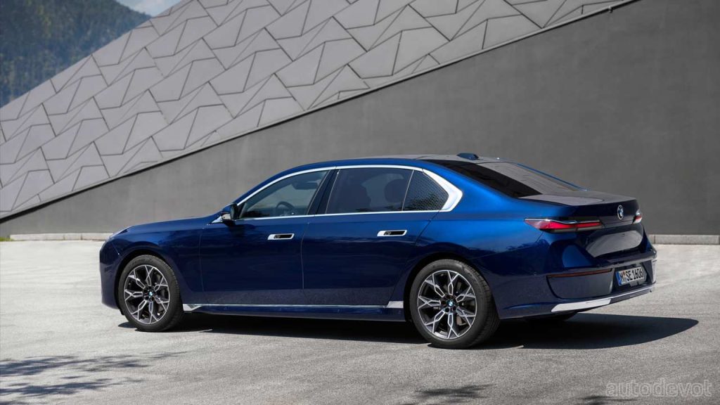 Next up, we’ve the 750e xDrive. It also packs a 3.0-litre (2998 cc) straight-six turbocharged petrol engine and an electric motor integrated into the ZF 8-speed automatic gearbox. The ICE pumps out 230 kW (313 metric hp) and 450 Nm (332 lb-ft) of torque, while the e-motor develops 145 kW (197 metric hp) and 280 Nm (206.5 lb-ft). The combined figures are 360 kW (489.5 metric hp) and 700 Nm (516 lb-ft). Do note that the 360 kW output is with temporary boost; you’ll get a bit less during normal times. The official 0 to 100 km/h (62 mph) sprint time is 4.9 seconds. An 18.7 kWh usable battery pack is claimed to offer a pure electric range of anywhere between 80 to 89 km (50-55 mi).