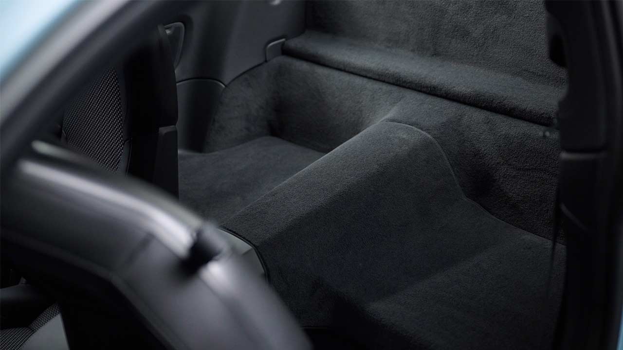 On the inside, you get standard four-way adjustable Sports Seats Plus, while there’s an option to go for the Adaptive Sports Seats Plus (18-way, electric) (€2,623.95), as well as the even sportier and lightweight full bucket seats featuring Race Tex (a high-quality microfibre material with recycled polyester content) seat centres. Matte black and high-gloss black decorative elements round off the T interior. Optionally, the seat belts can be ordered in Slate Grey or Lizard Green. And, as you can probably tell from the photos, the rear seats are deleted as standard to save some weight (available as a no-cost option). Reduced sound insulation material, lightweight glass and a lightweight battery shave off even more weight.