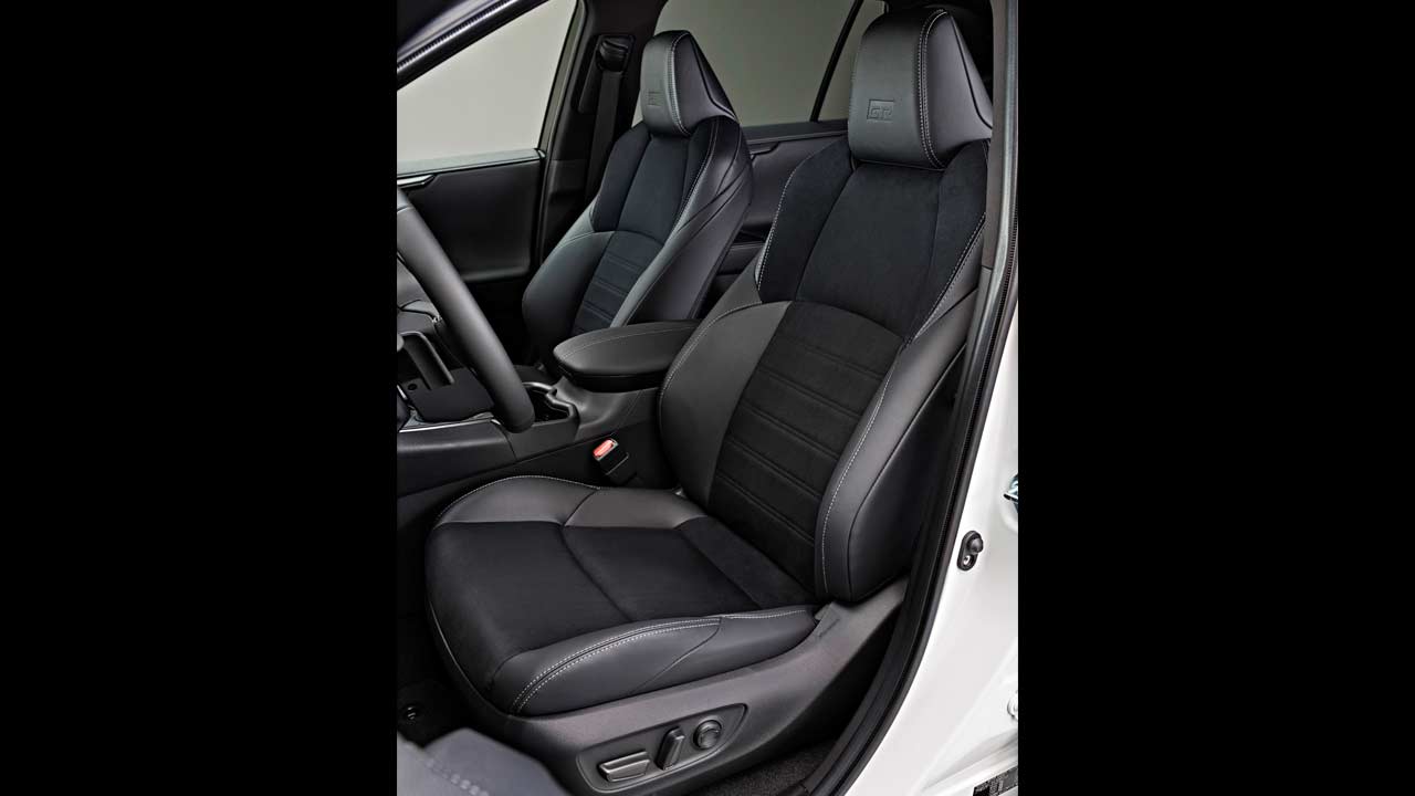 Inside, the sporty seats are finished in suede-effect upholstery with synthetic leather bolsters. The headrests feature an embossed GR logo. The silver contrast stitching can be found on the seats, steering wheel and shift lever. The door panels and steering wheel feature gunmetal accents. In addition to the steering wheel, the floor mats are also GR-branded. A 10.5-inch central touchscreen and a 12.3-inch driver display are standard inclusions.