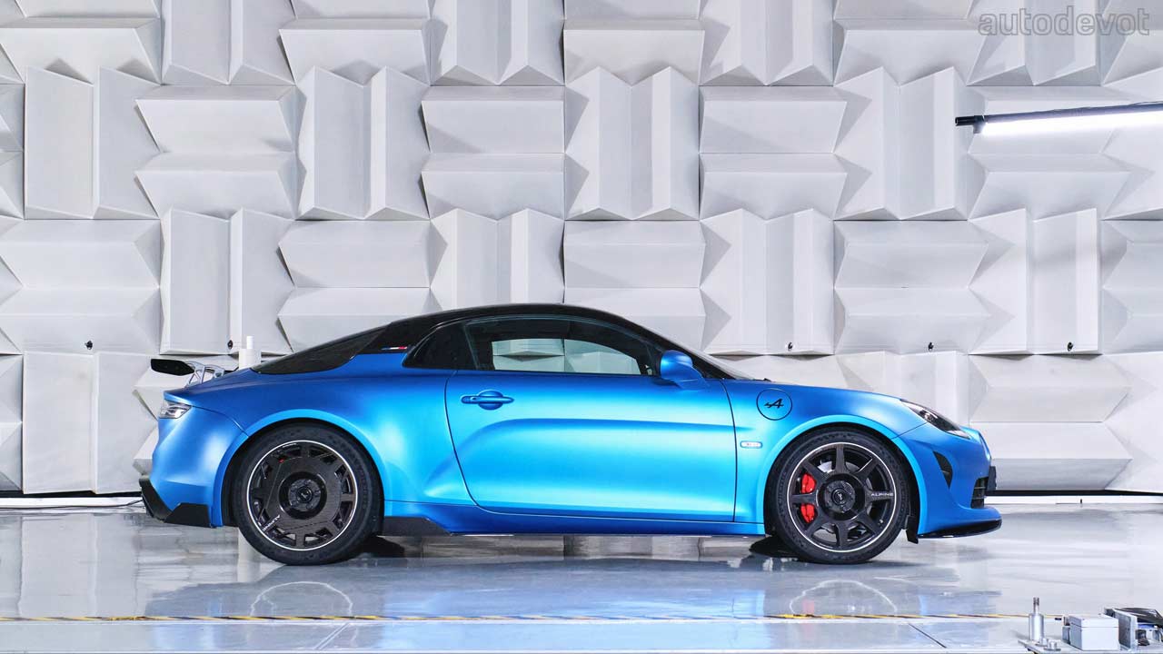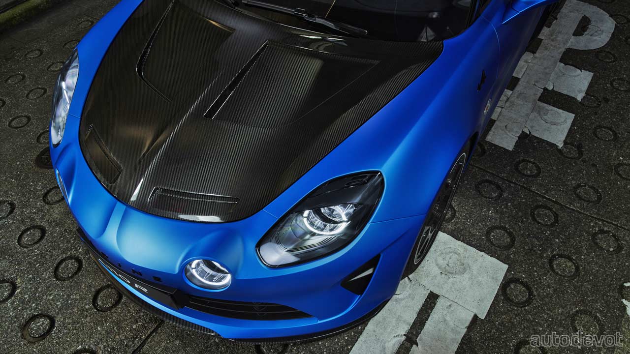 The 1.8-litre 4-cylinder turbocharged petrol engine pumps out 221 kW (300 metric hp) at 6,300 rpm and 340 Nm (251 lb-ft) of torque from 2,400 rpm to 6,000 rpm. There’s 18 metric hp and 20 Nm more than in the A110 S. There’s also a sports exhaust system with 3D-printed double wall to isolate exhaust gases and protect other nearby parts. The official 0-100 km/h (62 mph) sprint time is 3.9 seconds and the top speed is 285 km/h (177 mph).