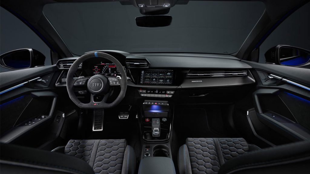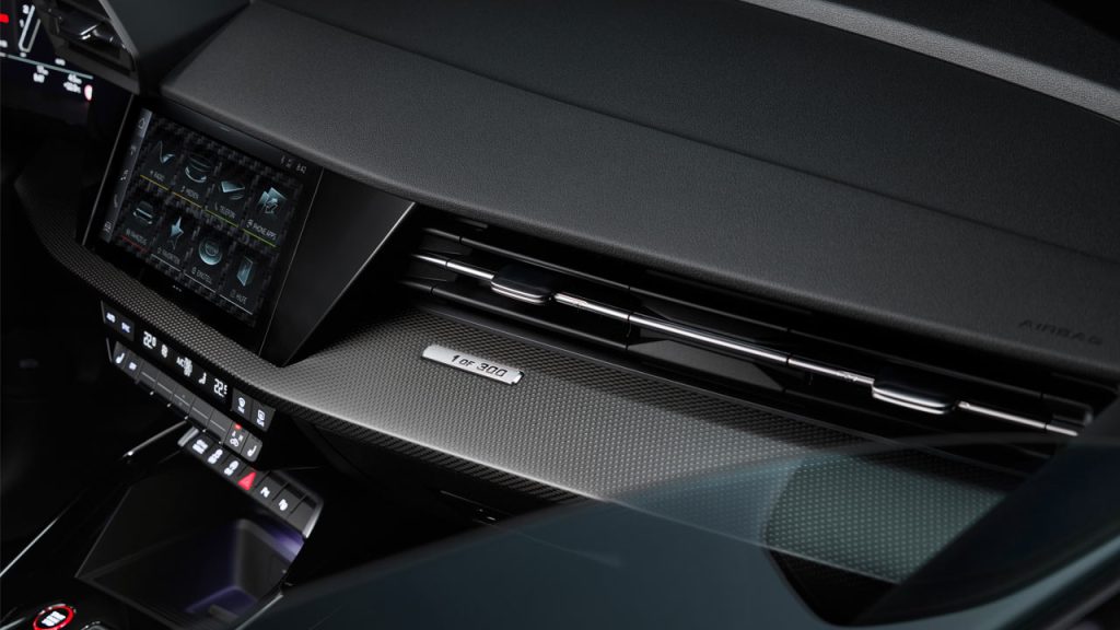 On the inside, you get standard front bucket seats with carbon fibre shells, and you also get a limited edition numbered badge on the passenger side of the dashboard. The rest of the things are the same as those of the regular RS 3 models.