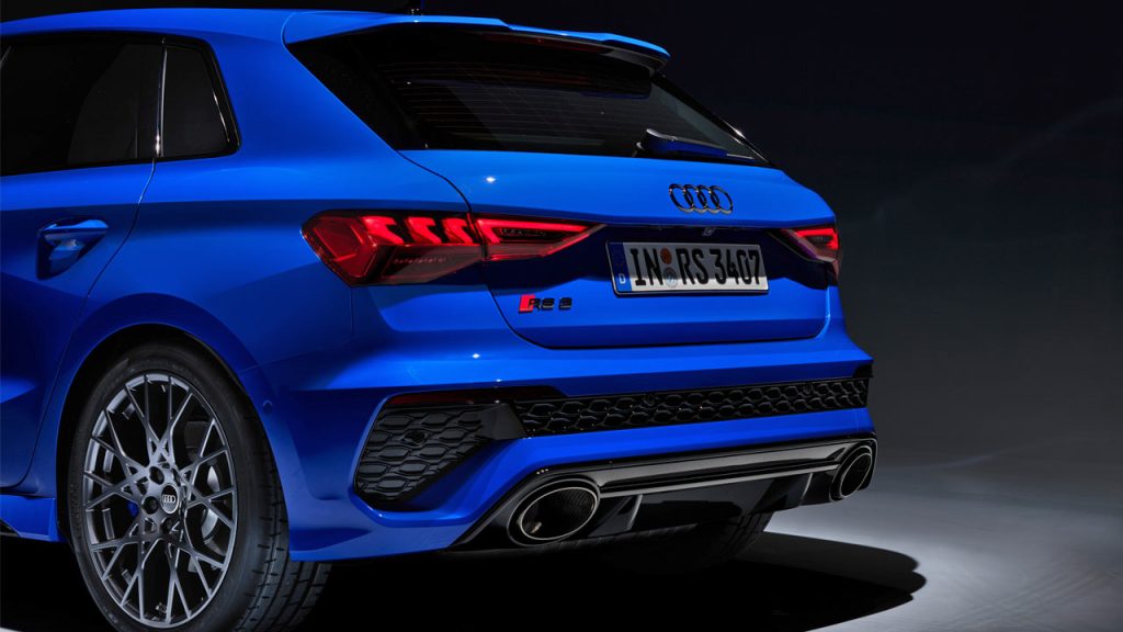 So, what’s all the hoopla? Well, visually, the RS 3 performance edition doesn’t look any different compared with the regular RS 3 models except for a new set of 19-inch motorsport-design wheels. The wheels are wrapped with semi-slick Pirelli P Zero Trofeo R tires as standard. The Matrix LED headlights with darkened bezels, RS ceramic brakes, RS sports exhaust system, and RS sports suspension with adaptive damper control, which are all optional extras in the regular RS 3 models, are included as standard in the RS 3 performance edition.