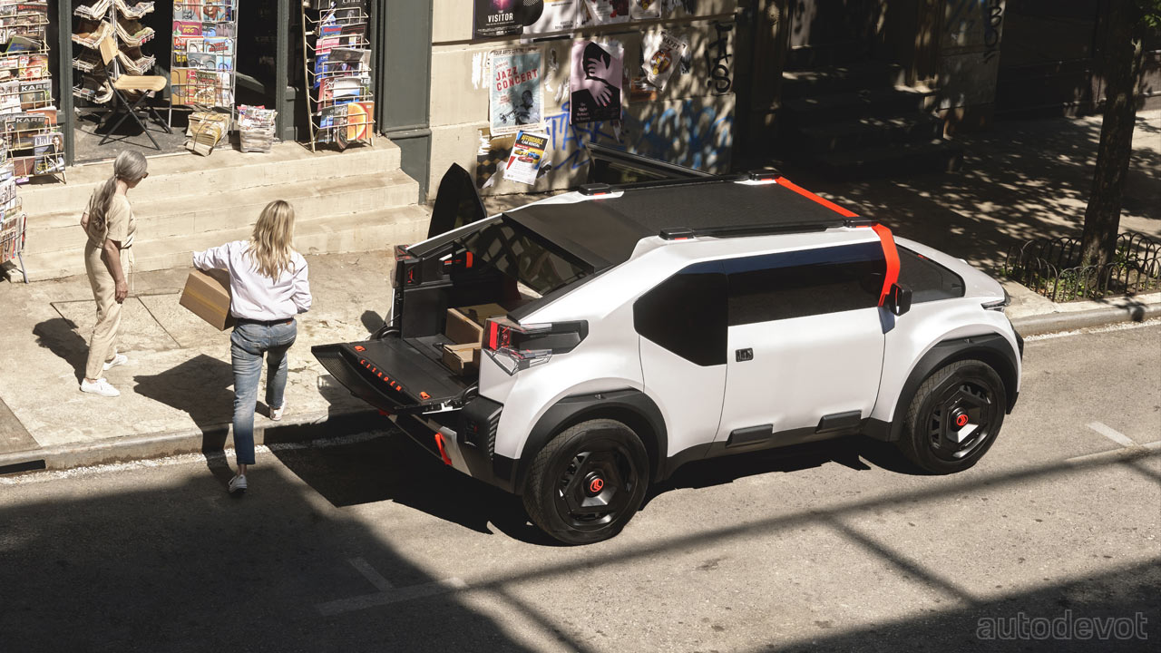 The name ‘oli’ rhymes with Ami—another simple and quirky EV. So, what kinda contraption is oli? Is it a car or a pickup truck? Apparently, it is the latter, because notice that bed at the back. As for the aerodynamics, Pierre Sabas, Head of Design, suggests that since the vehicle’s top speed is limited to 110 km/h (68 mph), the vertical windscreen shouldn’t be a problem. Just make sure that you take a different vehicle when you plan for shoplifting. The reason the windscreen is vertical is that it’s the shortest distance between top and bottom and uses the smallest amount of glass. Plus, the idea is also that a small screen less exposes the occupants to the sunlight and therefore reduces the air conditioning demand.