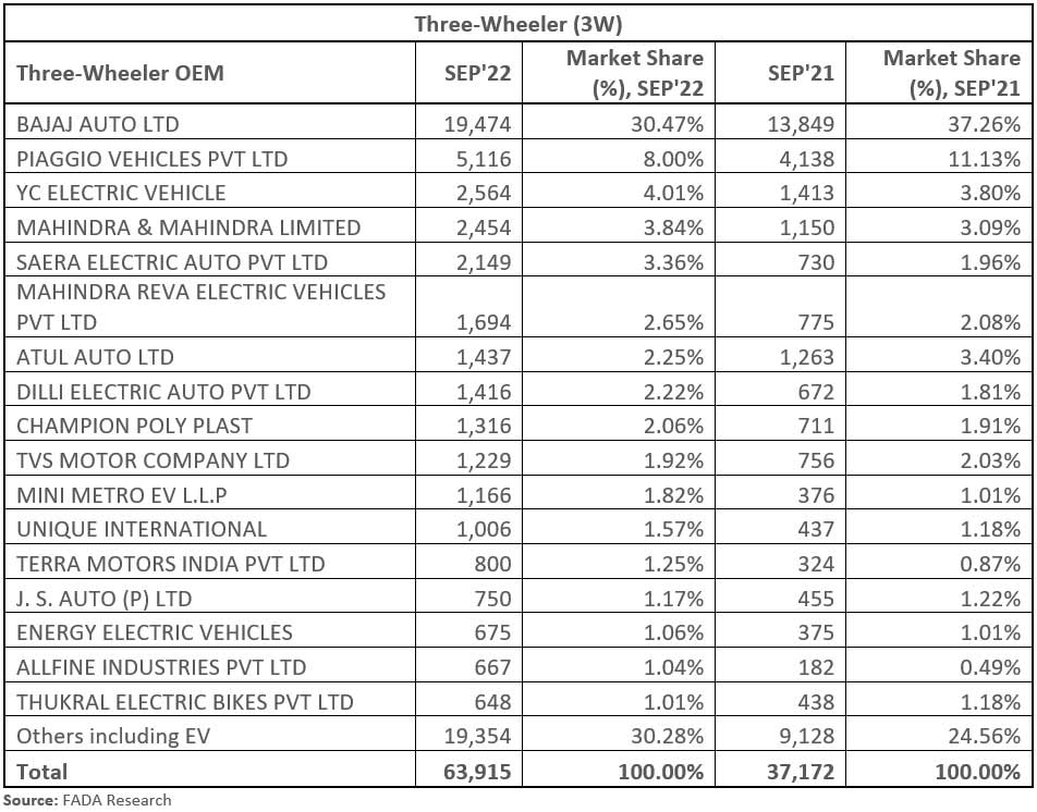 The two-wheeler segment registered a healthy growth of just over 9% in September 2022, while the three-wheeler segment overall continues to register a strong double-digit growth; last month it was nearly 72%. The CV segment with nearly 19% growth was not bad either, while the Tractor segment registered a marginal decline of 1.49%. FADA President Manish Raj Singhania had the following to say –