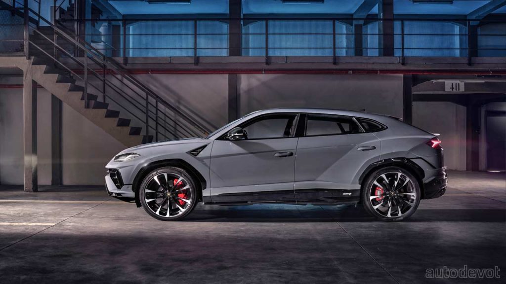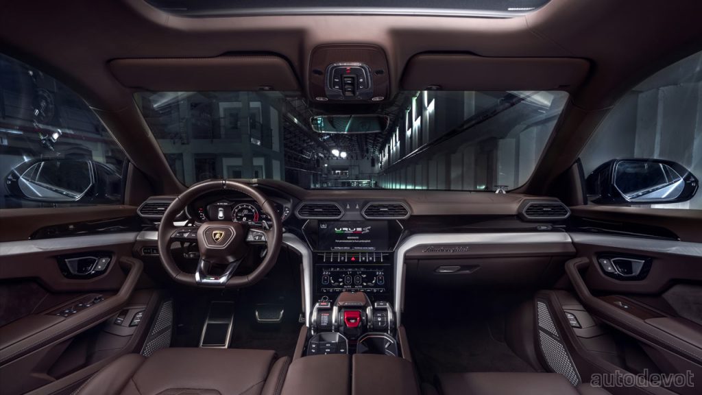 The Urus S rides on 21-inch wheels as standard, while you got 22-inch titanium matt and 23-inch bronze-finish wheels are available in the options list. As for brakes, well, the Urus S borrows ’em from Performante; the carbon ceramic discs measure 440 mm at the front and 370 mm at the rear, gripped by 10-piston and single-piston calipers, respectively. Adaptive air suspension with electronically controlled semi-active dampers is standard, and so are active roll stabilization system and four-wheel steering.