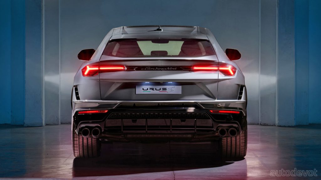 The Urus S doesn’t look as busy as the Urus Performante, so you got that advantage going on if you rather prefer cleaner looks. However, it does get a carbon fibre bonnet with matt black air vents—which can be optionally finished in gloss black or body color. A naked carbon roof is an optional extra. The rear fascia doesn’t look all that different from that of the Performante; there’s a matt black-painted lower part housing a twin-pipe exhaust in brushed steel as standard, but you got matt, gloss black or bright chrome options. The roof wing looks neatly integrated here as opposed to an aftermarket-looking wing in the Performante.