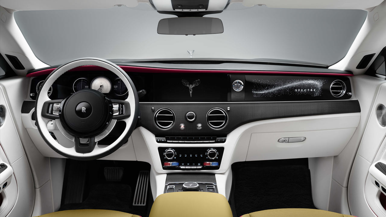 But anyway, the grille is the widest ever bestowed on a Rolls-Royce, and it is softly illuminated with 22 LEDs lighting up the sandblasted rear side of each of the vanes. Another design/production highlight is that the taillights are set into the largest single body panel ever produced for a Rolls-Royce, which extends from the A-pillar to the boot. Also, Spectre is the first production two-door coupé to be equipped with 23-inch wheels in almost one hundred years. What’s more? the Spectre boasts a drag coefficient of 0.25 Cd, making it Rolls-Royce’s most aerodynamic car ever.