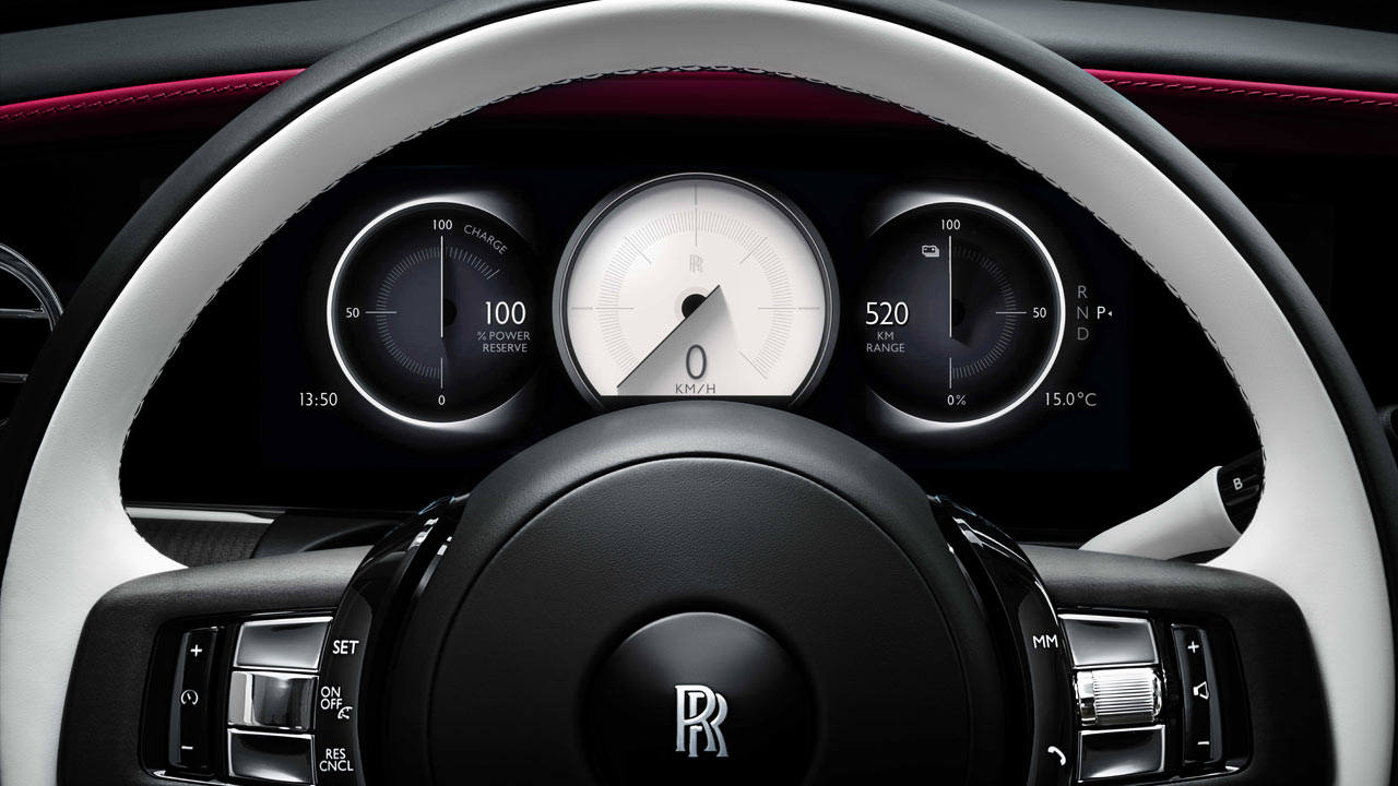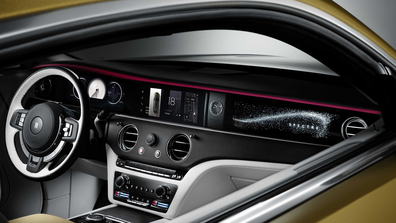 Things have gone all-digital on the dashboard, naturally, and Rolls-Royce calls this digital architecture ‘SPIRIT’. Clients can extend their Bespoke commission beyond the physical world and into the digital architecture. The colour of the dials, for example, can complement the interior hue of the car.