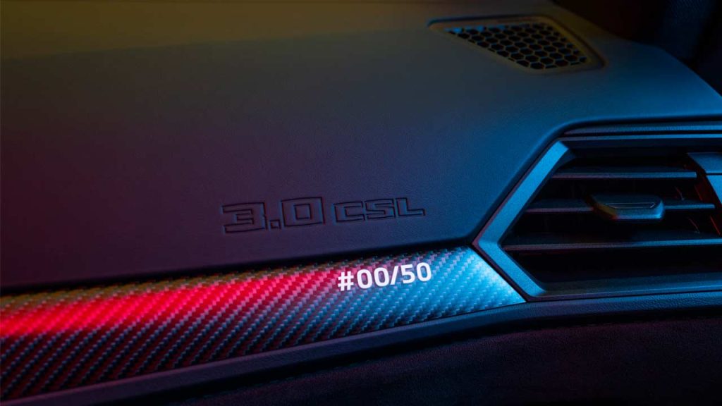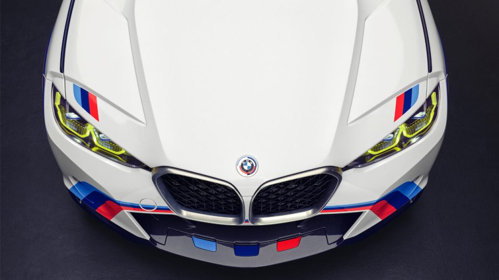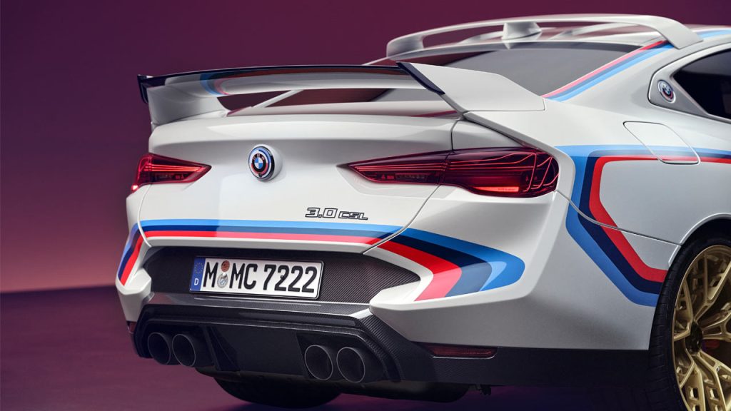 In case you couldn’t figure it out already, the new BMW 3.0 CSL is a retro-flavored, hyper version of the 2023 M4 CSL we saw in May this year. The bodykit features a roof spoiler and a gigantic wing at the rear, very similar to those of the original car. Some of the styling and aero elements are inspired by the 2015 3.0 CSL Hommage concept, and I guess you could say the 2023 3.0 CSL is a production version of it. Since only 50 cars are being built, both the base color and the M stripes (known in technical jargon as “livery”) are applied largely by hand, which makes it extra special for future owners.