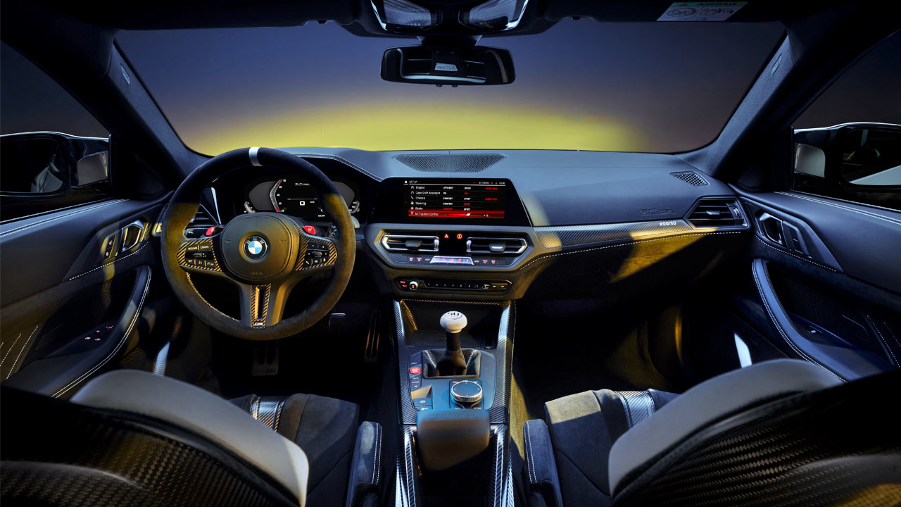 The cockpit features M Carbon full bucket seats; M seat belts; M Alcantara steering wheel; anthracite roof liner, and black Alcantara and matt carbon surfaces. You also gotta have the limited edition numbering on the dashboard, of course. That white gearshift knob adds more to the drama.