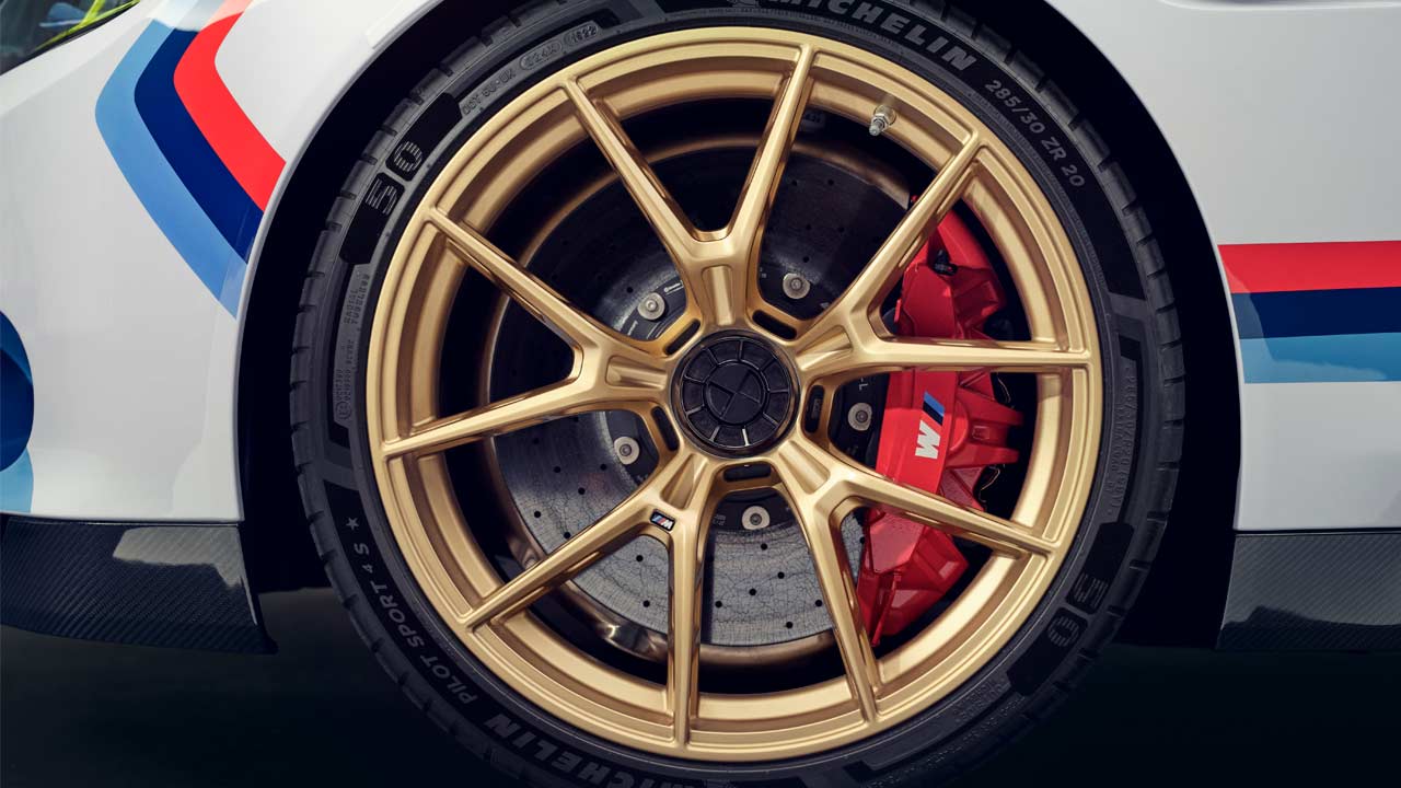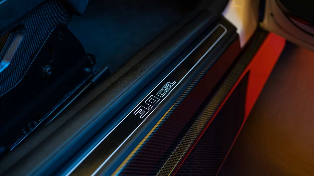 CFRP components are used generously to keep the weight down, plus a titanium silencer shaves off around 4.3 kg (9.5 lbs) compared with a conventional steel counterpart. The car rides on a staggered setup of forged light-alloy wheels measuring 20-inches on the front axle and 21-inches at the rear, wrapped with Michelin tyres developed exclusively for the new 3.0 CSL. The tyres bear the embossed number 50 on the sidewalls. Hiding behind the wheels are carbon ceramic brake discs measuring 400 x 38 mm at the front—gripped by 6-piston calipers and 380 x 28 mm at the rear—gripped by single-piston calipers. Adaptive M suspension with electronically controlled shock absorbers, and electromechanical M Servotronic steering with variable ratio, are also part of the package.