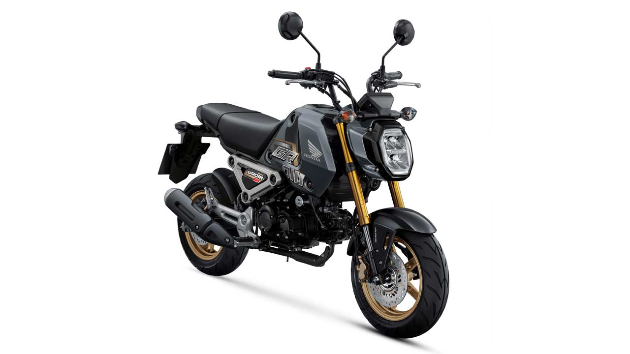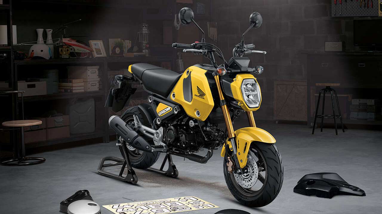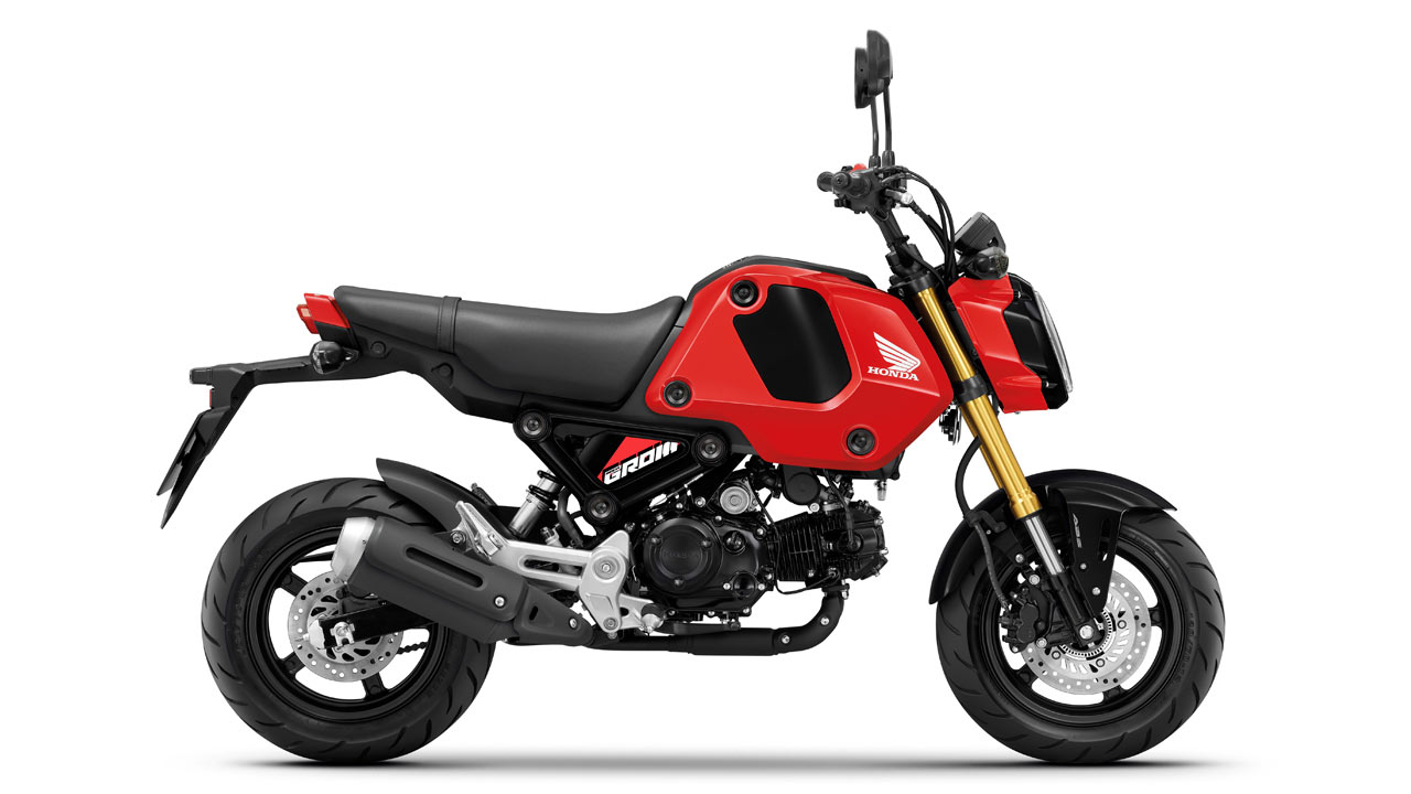 The Honda MSX125 Grom continues to be powered by a 125 cc single-cylinder air-cooled engine with 7.4 kW (10 metric hp) at 7,250 rpm and 11.1 Nm (8.2 lb-ft) at 6,000 rpm, paired with a 5-speed gearbox.