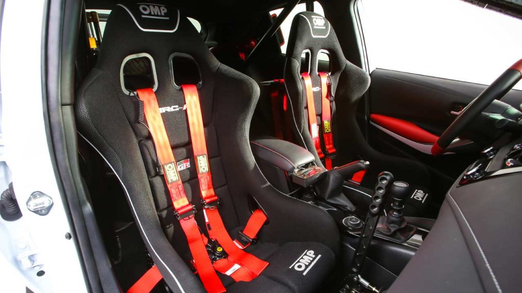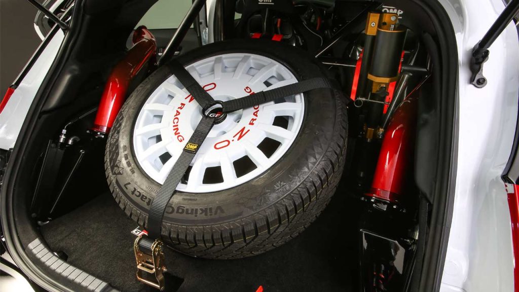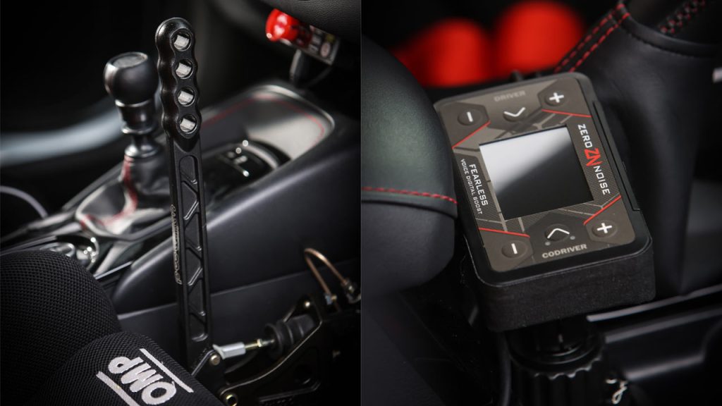 On the inside, you got OMP Racing seats, a steel roll cage, an OMP Racing fire suppression system, a ZeroNoise rally intercom system, and a spare tire mount and jack. With the addition of the turning brake system, the team slightly relocated the standard 6-speed manual shifter for optimal driver ergonomics.