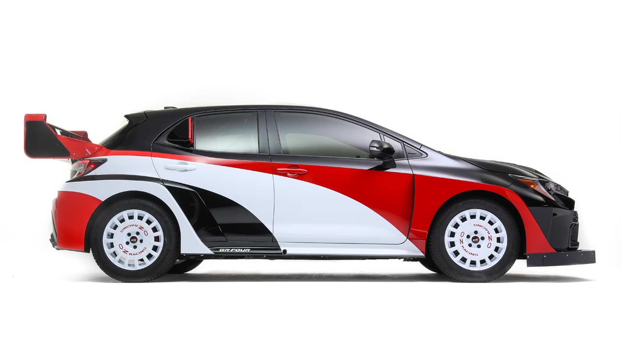 It’s called the GR Corolla Rally Concept, and it is based on a 2023 GR Corolla Circuit Edition. It was built by Marty Schwerter in collaboration with the Toyota Motorsports Garage team—Brad Vetter, lead fabricator; Justin Lacore, fabricator; and David Senn, technician. The build was apparently inspired by the GR Yaris Rally1 WRC car, and looking at that ridiculous carbon fiber rear wing, you don’t have a choice other than to agree. The 4.5-inch front splitter is made of a carbon composite material. On the corners are 17 x 8-inch OZ Racing wheels wrapped with 215/60 R17 Continental VikingContact 7 tires, and fully adjustable TEIN Gravel Rally coilovers complete the package.