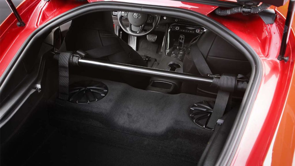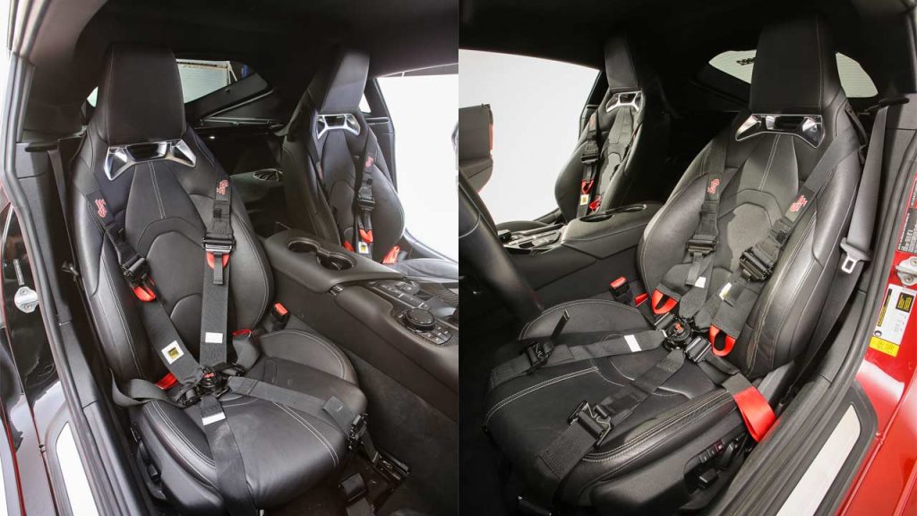 Inside, fans will find the standard GR Supra 3.0 seats and pretty much a standard interior, with the only additions being G-Force Racing Gear six-point racing seat belts attached to a harness bar.