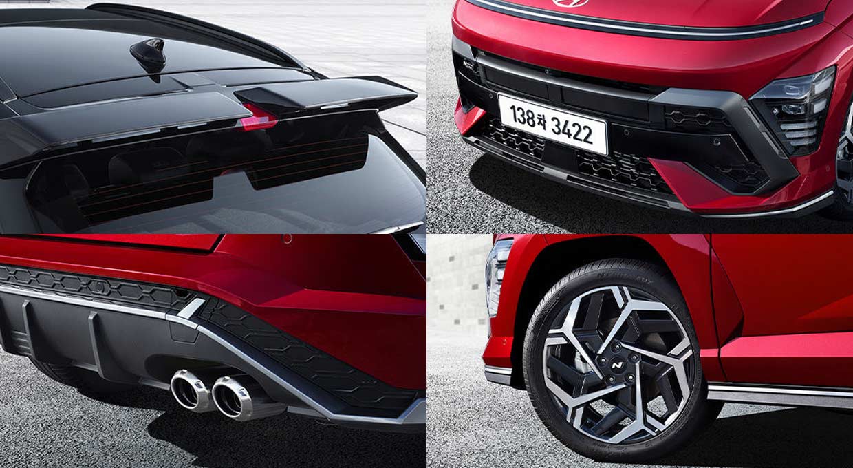 We already discussed the styling of the regular Kona variants in the previous post, but the Kona N Line was only showing its face last time. Now we can see more of it, and it gets quite an aggressive bodykit that includes model-specific sporty front & rear bumpers, wing-type roof spoiler, twin exhaust tips, and 19-inch Diamond-cut alloy wheels.