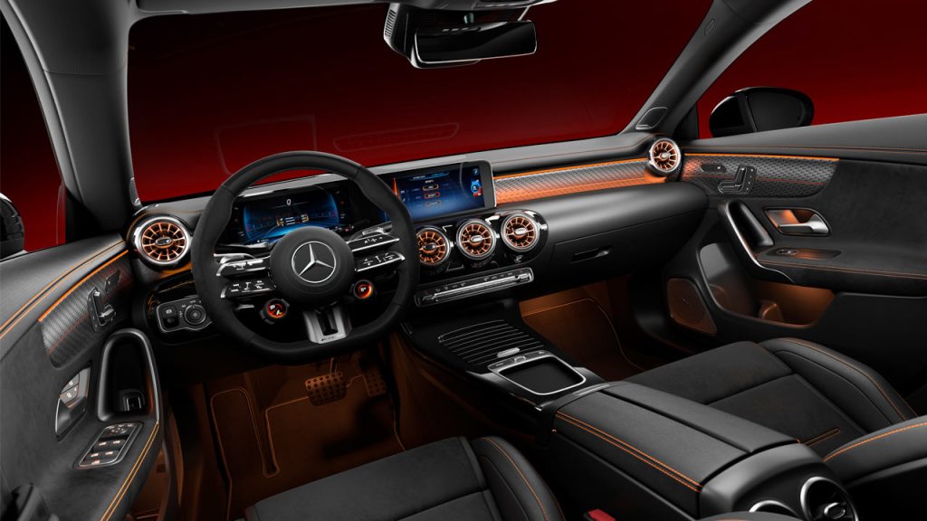 If you’re shopping for AMGs here, you got two options: AMG CLA 35 4Matic and AMG CLA 45 S 4Matic+, with the former coupled with a 48-volt mild-hybrid system that, among other things, offers a temporary power boost of 10 kW (14 metric hp). In fact, all the non-hybrid petrol variants also get a 48-volt mild-hybrid system that offers a temporary boost when needed.