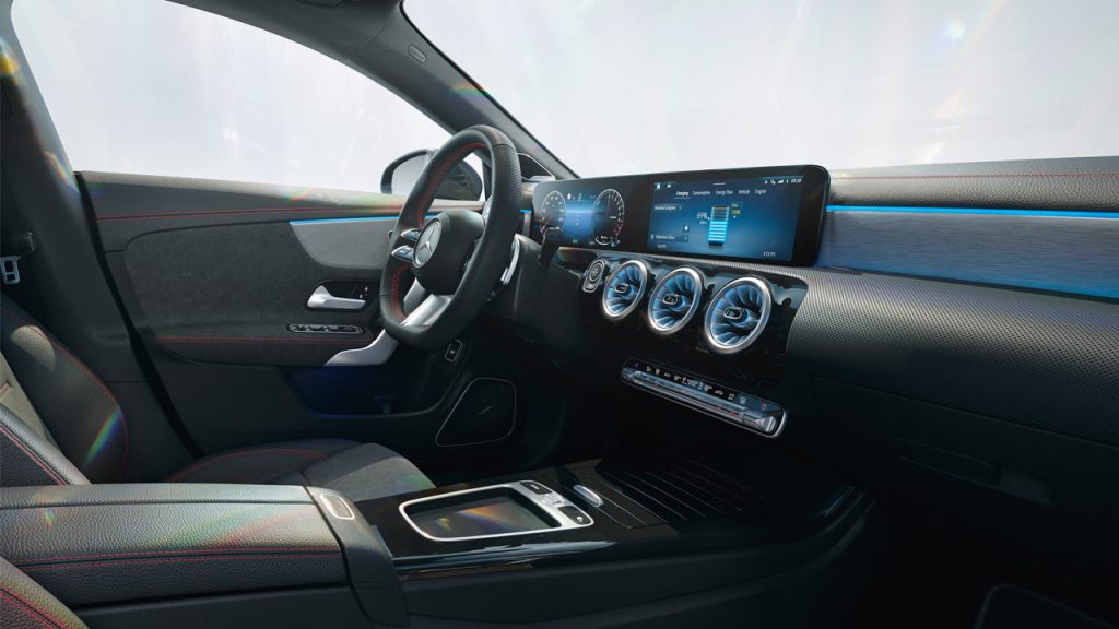 On the inside, you can probably notice some changes on the centre console, which are all part of the latest-gen MBUX system. Apparently, certain actions can now also be triggered without saying ”Hey Mercedes”. The MBUX voice assistant can also explain vehicle functions, which will be initially available in Germany. Standard equipment includes two displays (7-inch and 10-25-inch), while two 10.25-inch displays are optionally available. The optional Burmester surround sound system now features the Dolby Atmos audio experience.