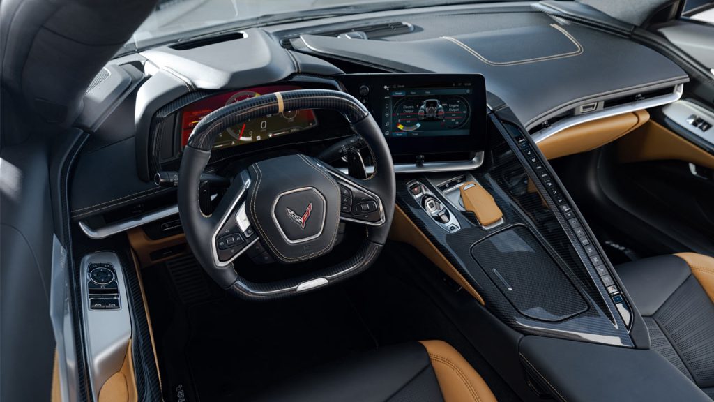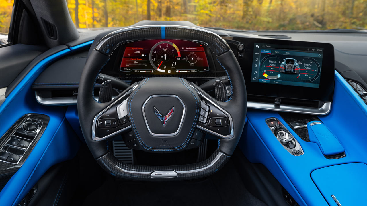 The Corvette E-Ray comes in 1LZ, 2LZ and 3LZ trims and in both Coupe and Convertible bodystyles. The photos here showcase the range-topping 3LZ trims, with MSRP starting at $113,850 for the Coupe and $120,850 for the Convertible. Visually, the Corvette E-Ray differentiates itself from the Corvette Stingray with wider front fenders, a different front bumper, a different set of wheels (wrapped with standard all-season tires), and a different rear spoiler. It also gets a unique E-Ray logo at the rear.