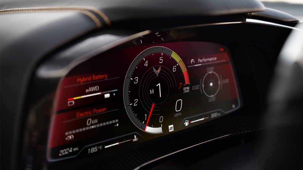 Moving on, the hybrid powertrain is a combo of a 6.2-litre naturally aspirated V8 LT2 engine paired with an 8-speed DCT at the rear and an electric motor at the front, forming an e-AWD system. A 1.9 kWh lithium‑ion battery pack and related electronics are positioned vertically in the middle of the chassis. The ICE produces 369 kW (495 bhp/502 metric hp) and 637 Nm (470 lb‑ft) of torque, while the e-motor at the front offers 119 kW (160 bhp/162 metric hp) and 170 Nm (125 lb-ft) of torque. The combined figures add up to 488 kW (655 bhp/664 metric hp) and 807 Nm (595 lb-ft).