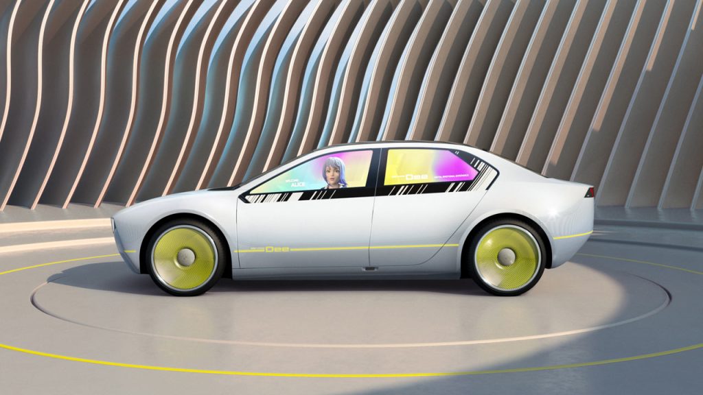 While there is that classic three-box sedan design, the traditional design elements such as the kidney grille, twin headlights and the Hofmeister kink are all reimagined, with “phygital” elements replacing analog ones. The i Vision Dee can also project an image of the driver’s avatar onto the side window as part of the personalized welcome drama. But wait, we are not done yet.