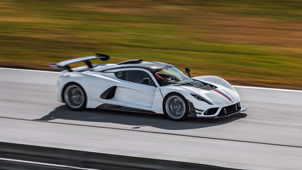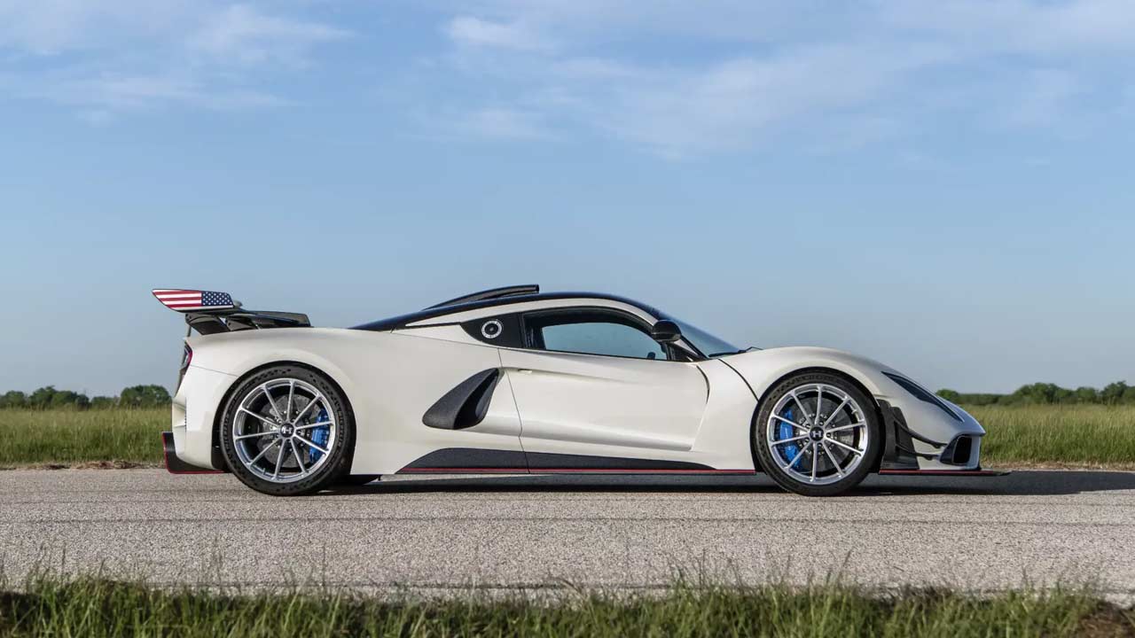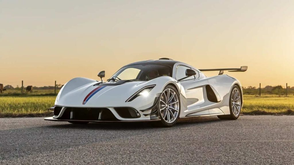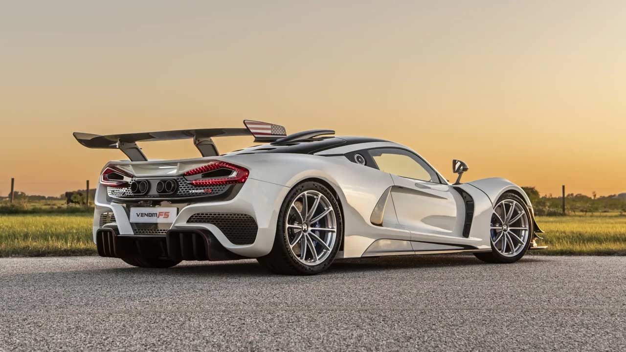 The Venom F5 Revolution is honed by the chief engineer John “Heinrocket” Heinricy who worked on cars including Corvette Z06 and Cadillac CTS-V in the past. The track-focused machine wears a more aggressive carbon fibre bodykit that includes a significantly larger front splitter, canards/flics, a functional roof scoop, and of course, a gigantic rear wing with the ability to adjust the angle of attack. The rear wing is claimed to deliver more than 800 pounds (363 kg) of downforce at 186 mph (299 km/h) and over 1,400 pounds (635 kg) of downforce at 249 mph (401 km/h).
