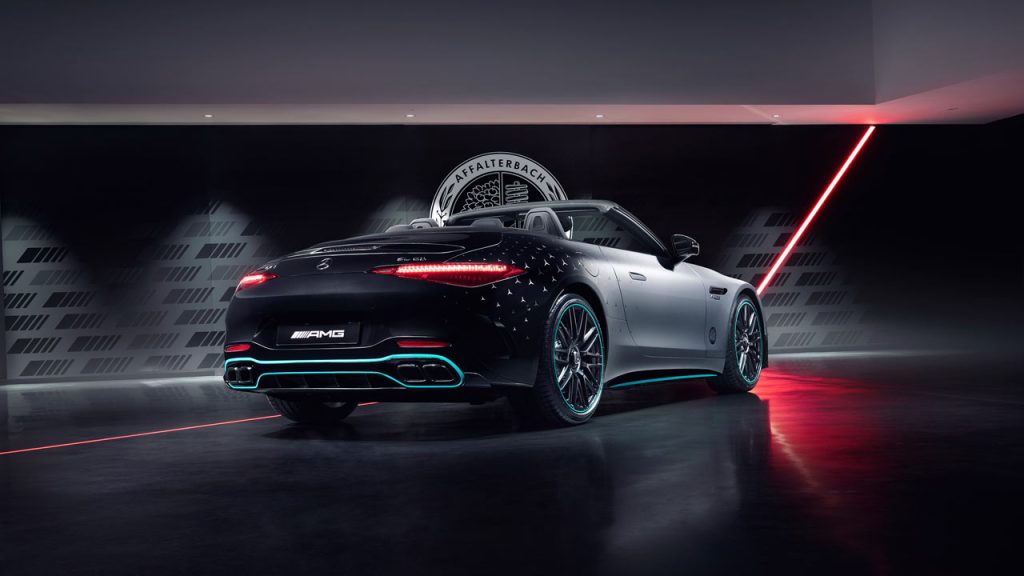 As the name suggests, it is based on the range-topping ’63’ version of the new SL, the SL 63 4Matic+. So, what’s all the hoopla? Well, the special edition includes the €3,332 AMG Aerodynamics package, €892.50 AMG Night package and €654.50 AMG Night package. The night packages essentially add gloss-black and black chrome elements. Besides these optional extras which are included as “standard” here, the special edition’s exterior paintwork is inspired by the livery of the Mercedes-AMG F1 W13 E Performance F1 car.