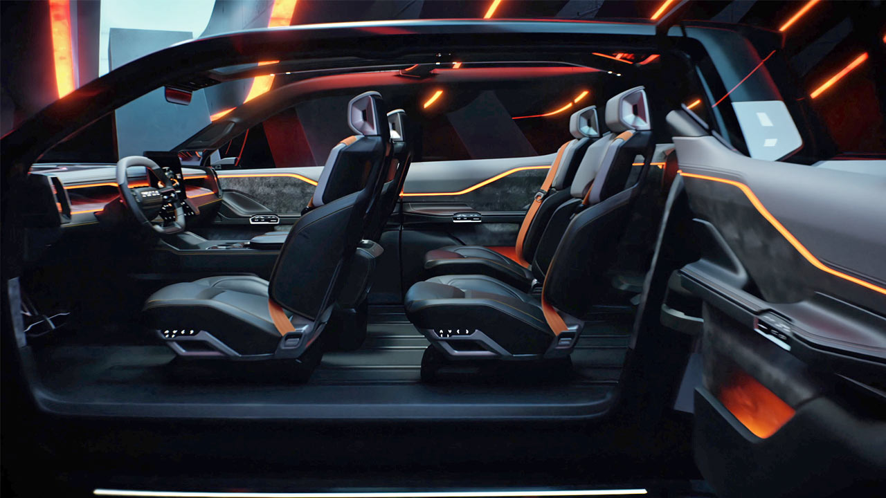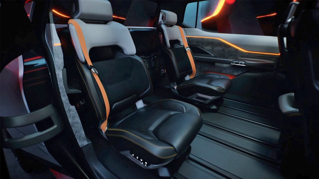 Flush door handles, powered side steps, a powered tailgate, and a powered rear step with an active diffuser, are some of the other key highlights. You probably can’t see in the pictures here, but the concept features third-row jump seats integrated into the powered mid-gate. The jump seats’ lower part can be removed to be used in the bed or elsewhere. The concept rides on gigantic 24-inch rims wrapped with 35-inch tyres. A self-leveling system is another key highlight of the truck.