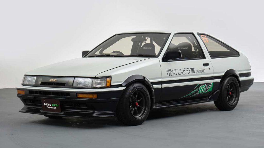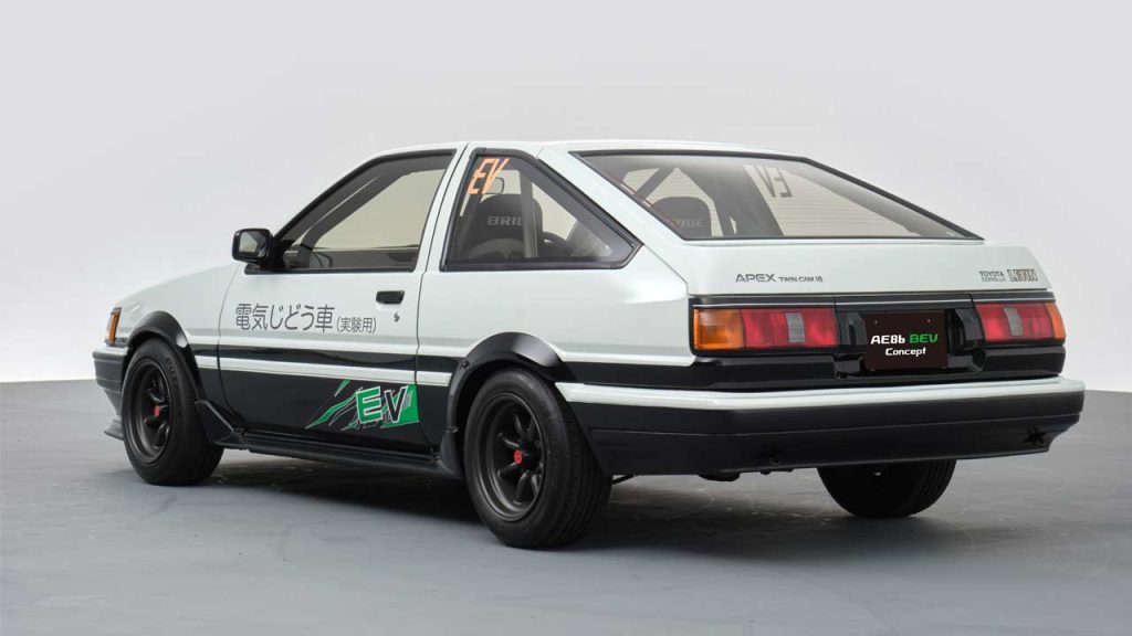 Next up, we have the AE86 BEV concept, based on the ’80s Corolla Levin 2-door coupe of the AE86 series. Again, Toyota didn’t bother sharing any details whatsoever, but as you can probably see, the battery pack and related electronics have been thrown at the back. However, the company was kind enough to share that the battery pack is from the Prius.