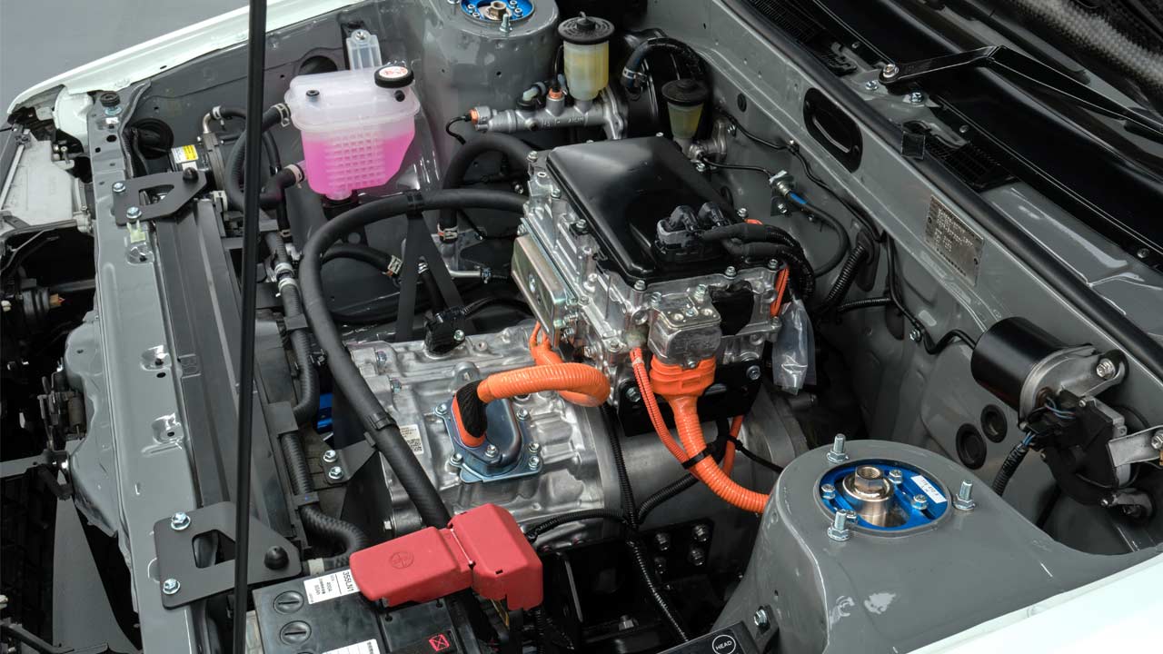 The idea of this build is apparently to make maximum use of the electrification technology of existing commercially sold vehicles, and therefore, it borrows the motor from the Tundra HEV.