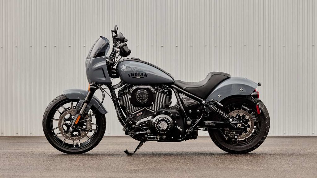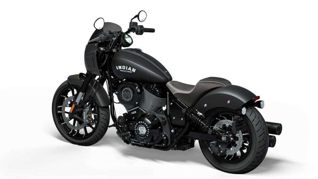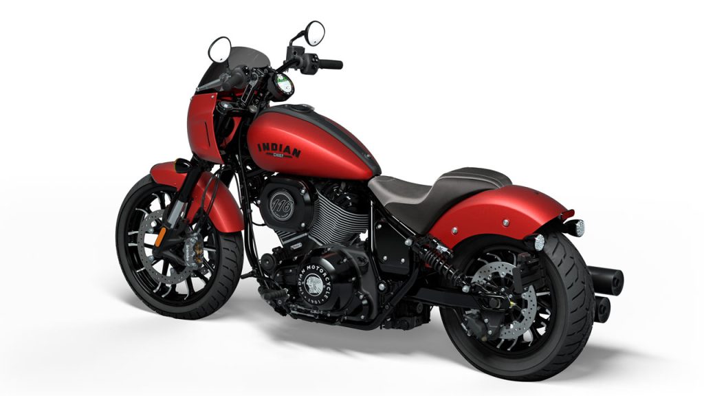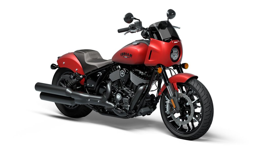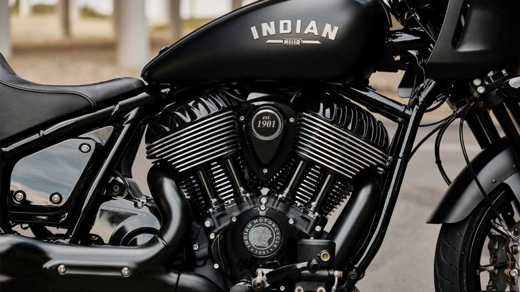 Key highlights of the 2023 Indian Sport Chief include LED lighting all around; a 4-inch circular touchscreen with Bluetooth connectivity; a 43 mm KYB inverted telescopic fork at the front; Fox Piggyback rear shocks; dual 320 mm discs at the front gripped by Brembo 4-piston calipers; Pirelli Night Dragon tyres wrapped to 19-inch front wheel and 16-inch rear wheel; a USB charging port; a 12-volt socket; ABS; Ride Modes (Sport, Standard and Tour), and a 15.1-litre (4.0 gal) fuel tank.