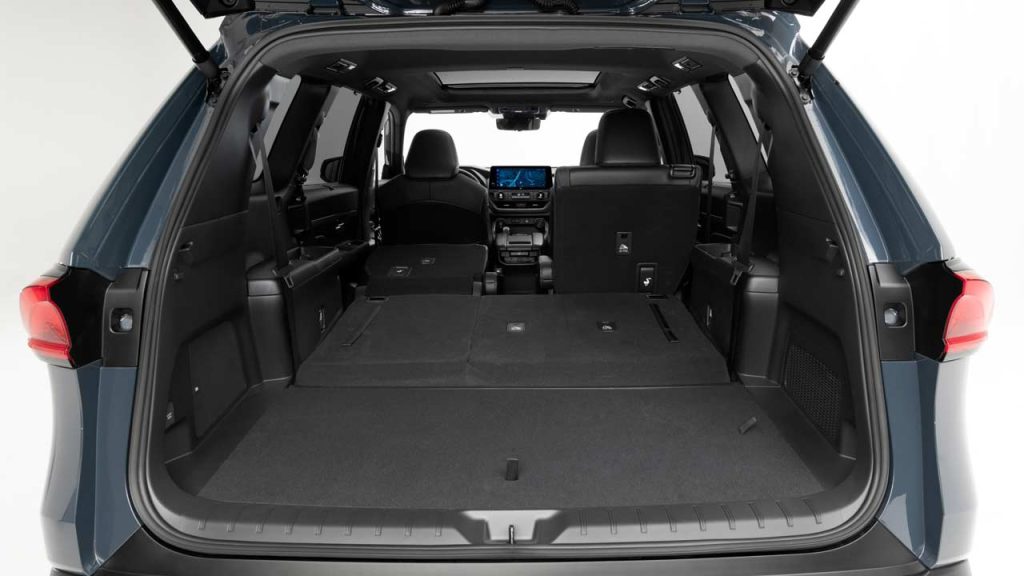 As standard, all Grand Highlander models come with the latest Toyota Safety Sense 3.0 suite of active safety and driver assistance systems, which include Pre-Collision System with Pedestrian Detection; Lane Departure Alert with Steering Assist; Full-Speed Range Dynamic Radar Cruise Control; Lane Tracing Assist; Road Sign Assist; Automatic High Beams, and Proactive Driving Assist. The Platinum trim also gets Traffic Jam Assist (requires active Drive Connect trial or subscription) and Front Cross Traffic Alert.