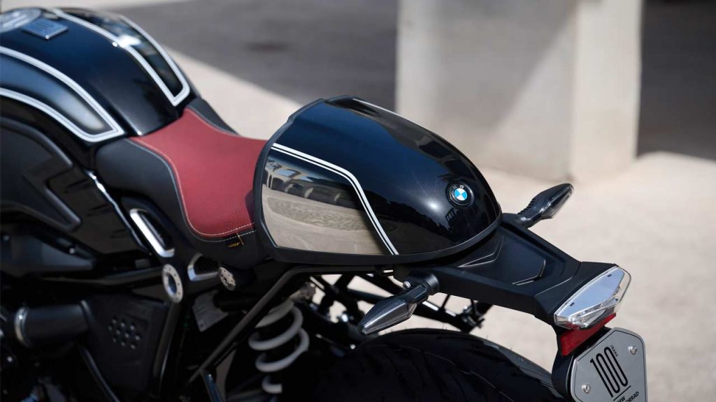 The R nineT 100 Years gets retro-styled contrasting chrome surfaces on its panels outlined with white double-lining. The front mudguard also features this white double-lining. The seat has a two-tone upholstery of black/oxblood for added drama. Other highlights include black fork tubes; black air intake snorkel; 719 Classic wheels with black anodized rim rings; Option 719 Shadow milled parts (cylinder head covers, engine housing covers, seat holders and oil filler plug), and Option 719 Shadow II milled parts (adjustable hand levers and footrests, expansion tank covers and handlebar end mirrors).