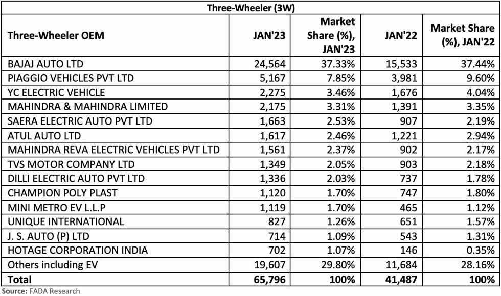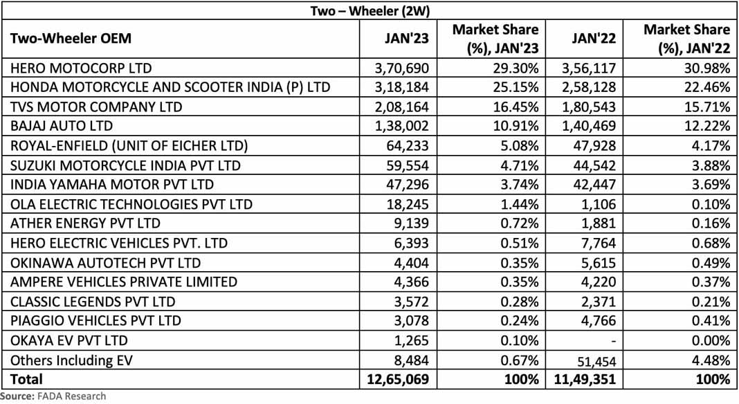 OEM-wise market share data for Jan 2023 with YoY comparison: