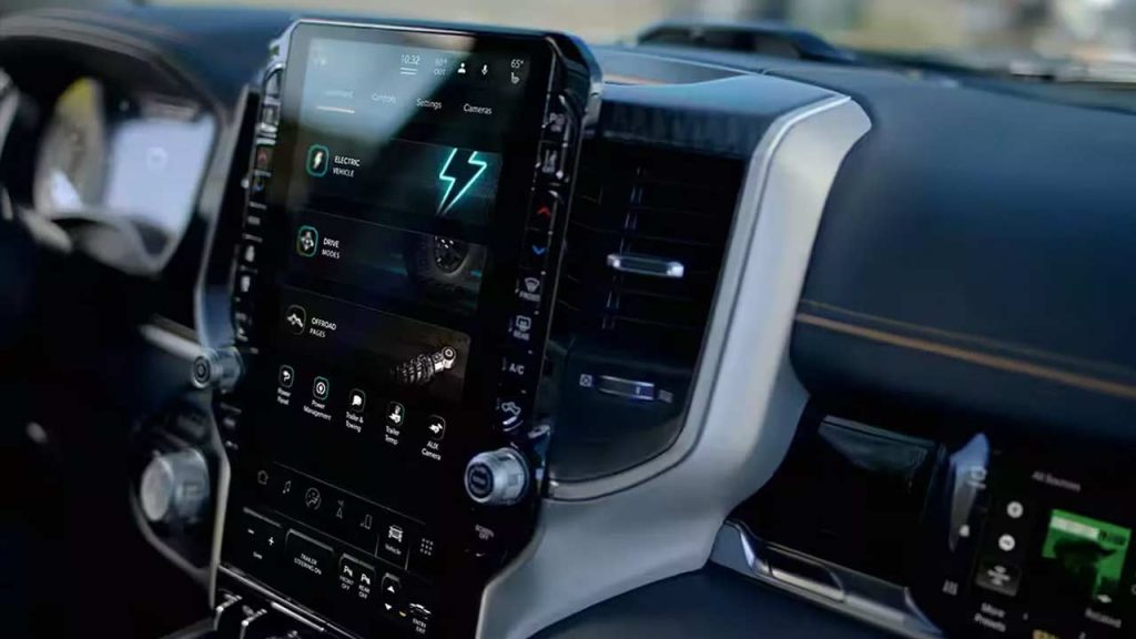Ram didn’t share a ton of details but as you can probably see, the truck has got a fairly usable frunk, a large portrait-style touchscreen, and what appears to be another touchscreen on the passenger side. The rest of the things are your typical pickup truck affair I guess.