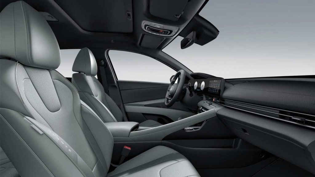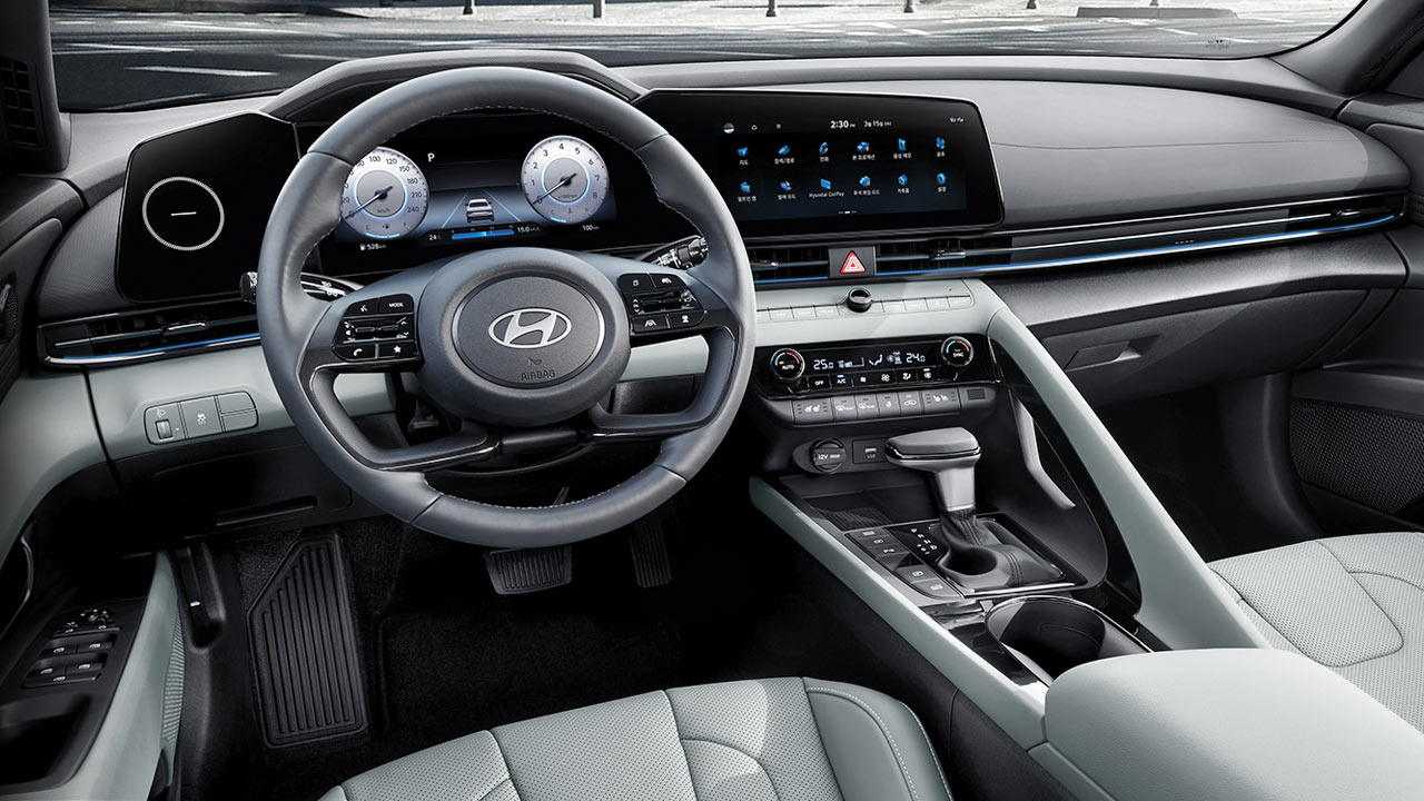 The ‘digital key 2 touch’ functionality allows you to open the door with your smartwatch or smartphone, plus, you can share the usage rights with up to 3 people. And, once inside, visually, things don’t look any different compared with the original 7th-gen Elantra; I mean, you still get that curved panel on the dashboard that houses two 10.25-inch displays. Other highlights include an integrated dashcam; heated & ventilated front seats; heated rear seats; memory function for the driver seat; wireless smartphone charging; Type-C USB ports; Bose premium audio system, and so on. You got three new color themes for the cabin: sage green, black one-tone and cashmere beige.