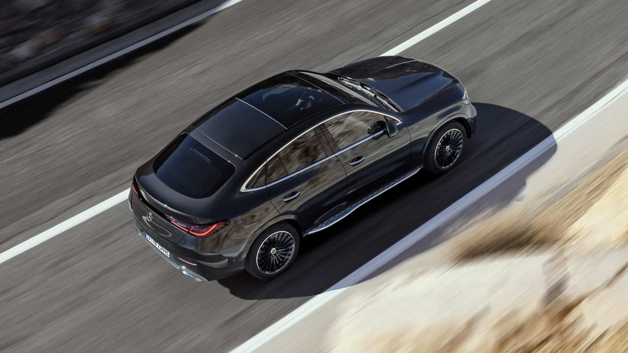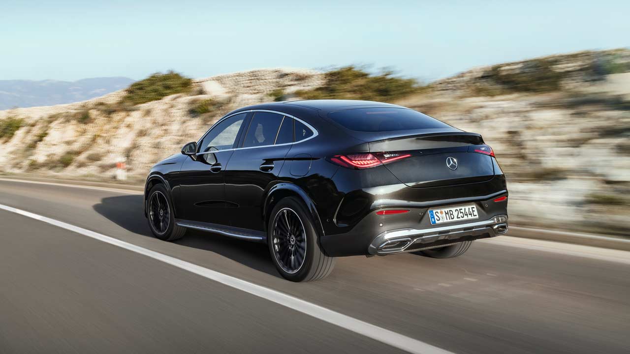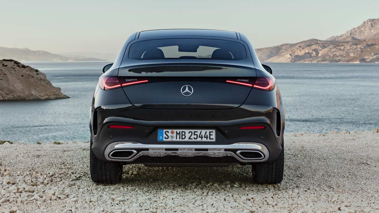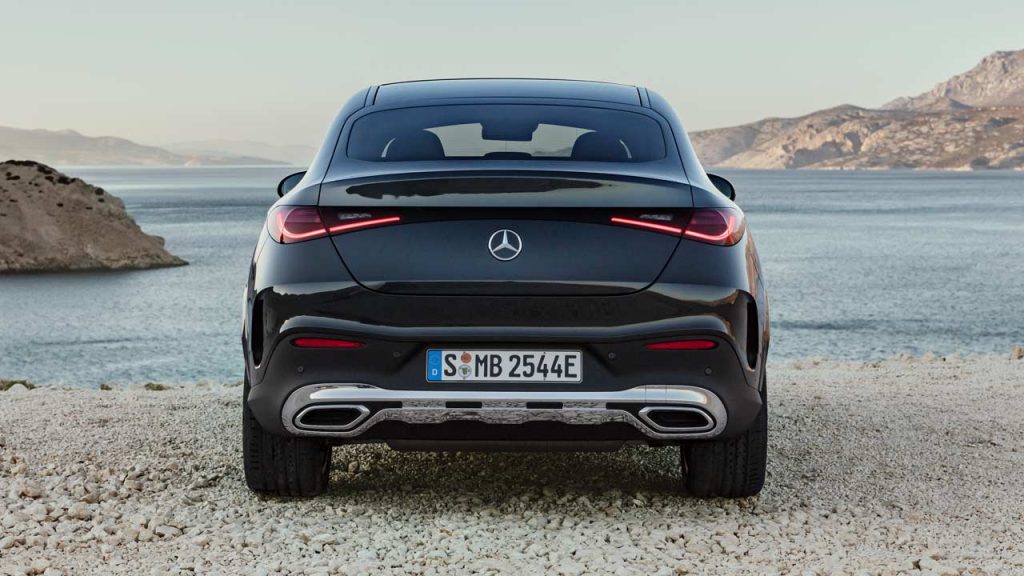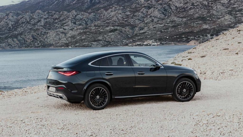 Obviously, you get similar styling elements as those of the regular GLC facelift, and I guess unless you see the vehicle from the three-quarter angles, you probably won’t be able to tell the difference between the coupe and the regular GLC model. Also, notice that while you get the same headlights in both bodystyles, the taillights in the coupe are different. But anyway, standard equipment includes the Avantgarde exterior with 18‑inch light alloy wheels and the chrome package. However, hybrid models roll off the line on mixed-profile tyres with different widths on the front and rear axles.