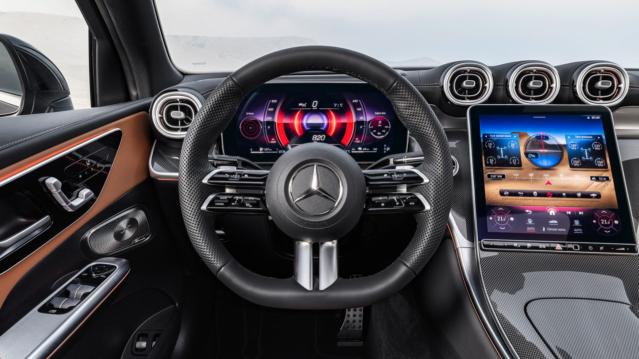 The interior of the 2023 GLC Coupé is blessed with Avantgarde line as standard. And, you get the same set of gadgets as the regular GLC, obviously, which includes a 12.3-inch driver display and a portrait-style 11.9-inch central touchscreen. The rest of the creature comforts and active safety systems are all the same, of course.