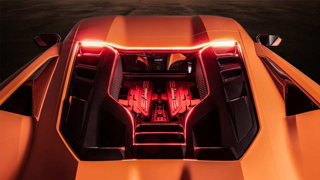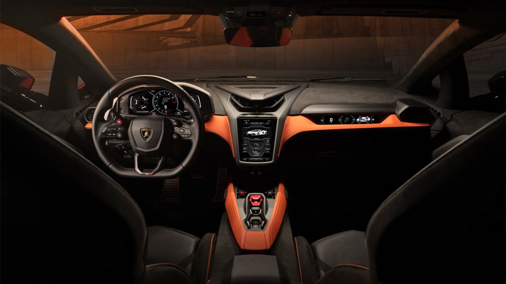 Lamborghini claims that the roof design offers 26 mm more headroom than the Aventador Ultimae, while the new monofuselage enables 84 mm more legroom, leaving additional space behind the seats to accommodate luggage up to the size of a golf bag. And, of course, the new seats are claimed to be more comfortable than the typical uncomfortable Lamborghini seats. Amazon Alexa connectivity and all the usual ADAS stuff are there too.